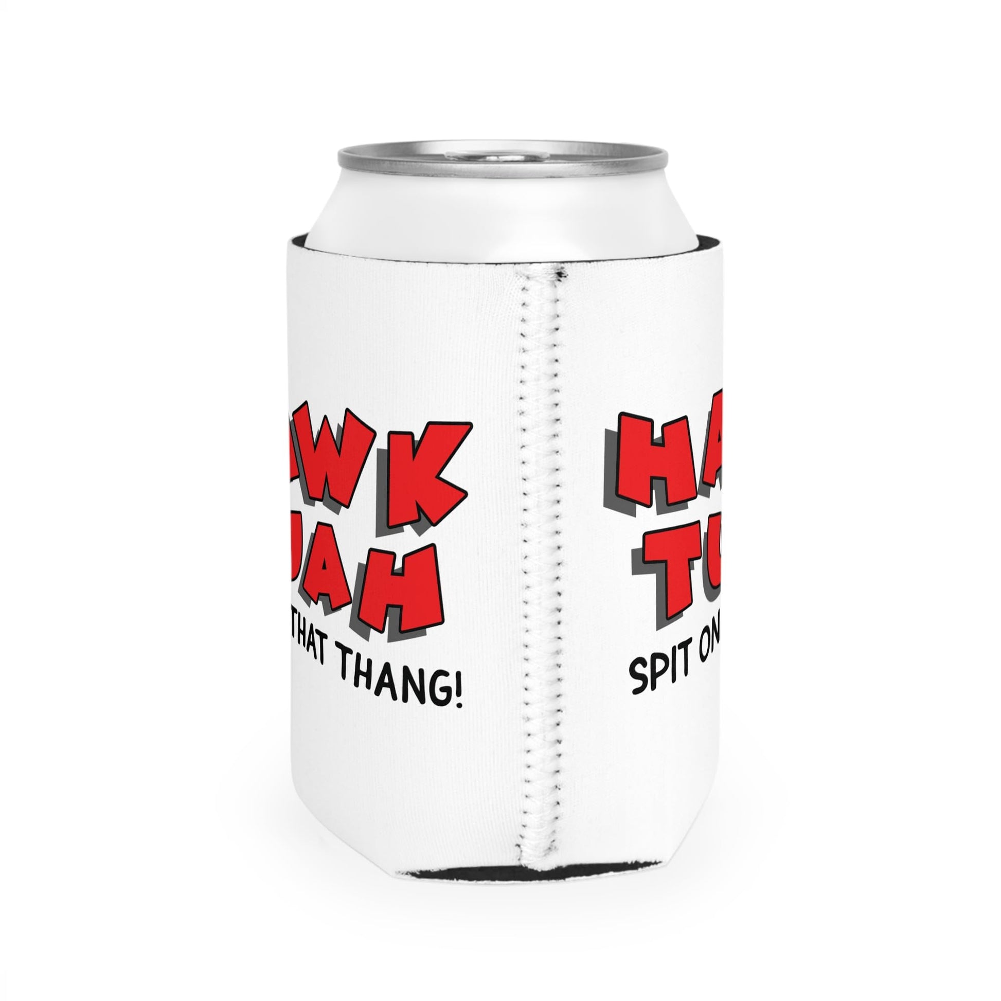 Hawk Tuah Spit on That Thang Funny Can Cooler - White with Red Text | Gag Gift, Christmas Stocking Stuffer, College Party, Halloween Drink Holder