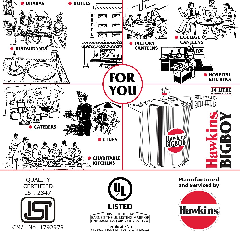 Hawkins Bigboy Aluminum Pressure Cooker, 14 Litres