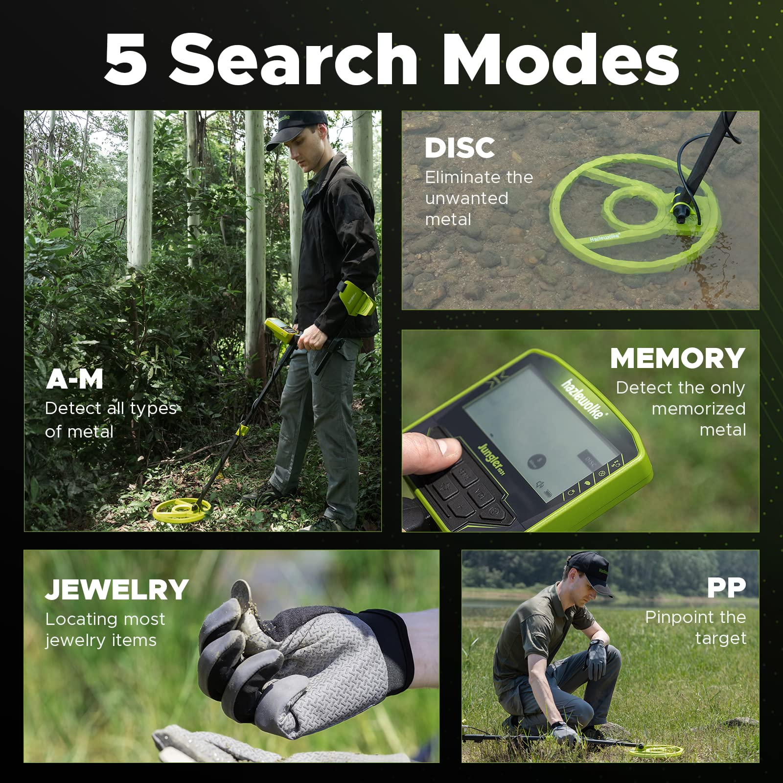 • 【Be The First Metal Detector for Every Beginner】 The NEW User Interface specially developed and designed for beginners, with a large-size backlit LCD display (50% larger than others), is more intuitive and easy to read. The silicone buttons that can be easily operated with one hand will not disappoint you in terms of pressing feel and sensing sensitivity. 5 optional modes, ALL METAL, DISC, MEMORY, JEWELRY, PINPOINT, give you endless exploration fun. Everything is to help you get started better.