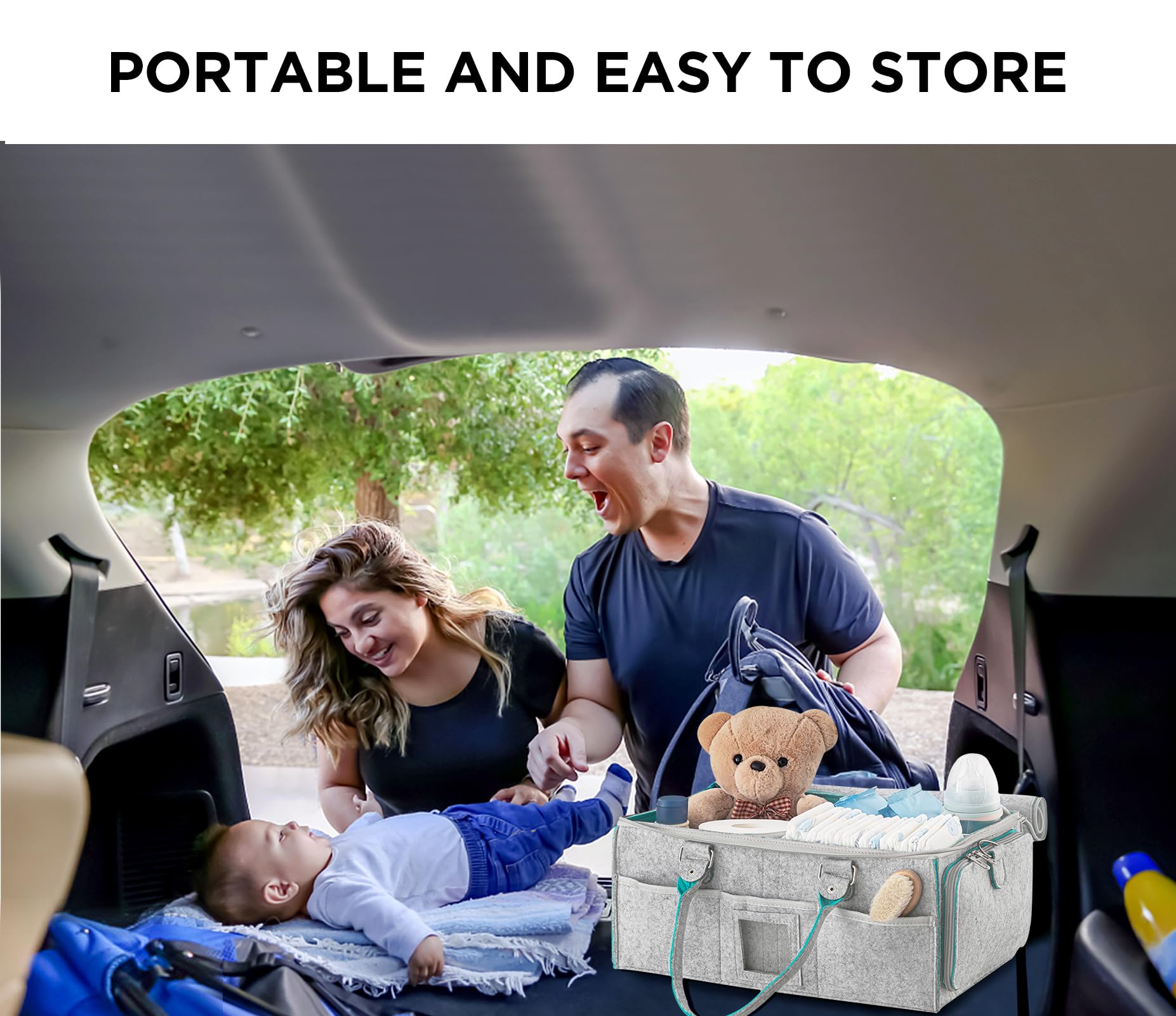 • PREMIUM MATERIAL: The foldable Diaper Caddy Organizer is made of high quality felt material, environmentally friendly, long-lasting and durable for infant boy/girl.