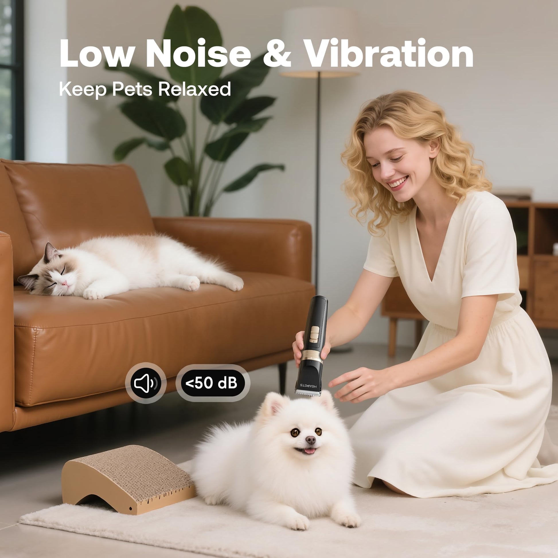 HEAPETS Dog Hair Clippers for Grooming Kit and Dog Paw Trimmer Nail Grinder for Grooming, Low Noise Rechargeable Cordless, Shaver Grooming Supplies for Pet Cats Dogs (Black, White)