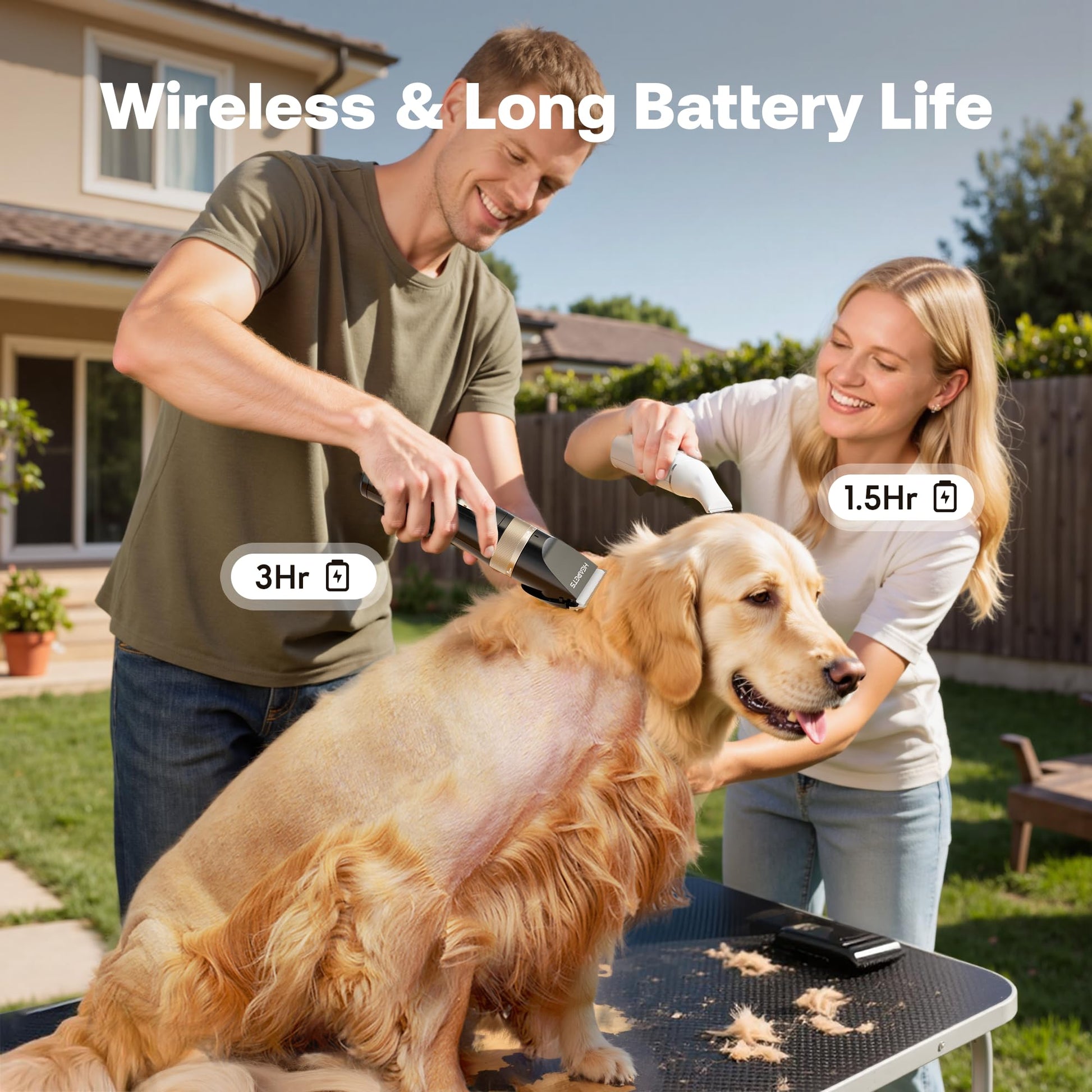 • Rechargeable dog trimmer with built-in battery is good for exceptional flexibility. Don't worry that it will stop working and have half groomed dog.