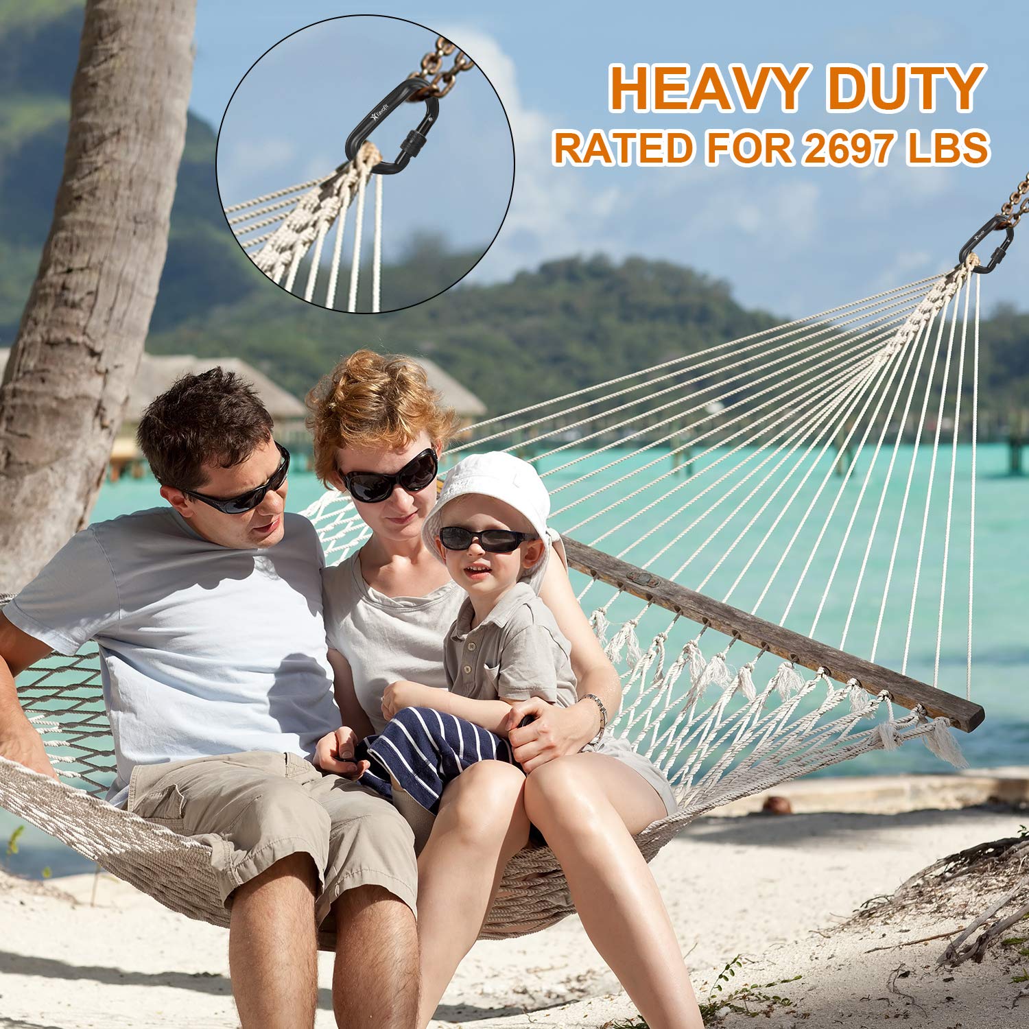 • Heavy Duty: Rated at 12KN (2,697 lbs), these heavy duty carabiner clips are crafted from aircraft grade aluminum, offering outstanding durability for outdoor adventures and everyday tasks. Please note they are not intended for climbing or similar activities