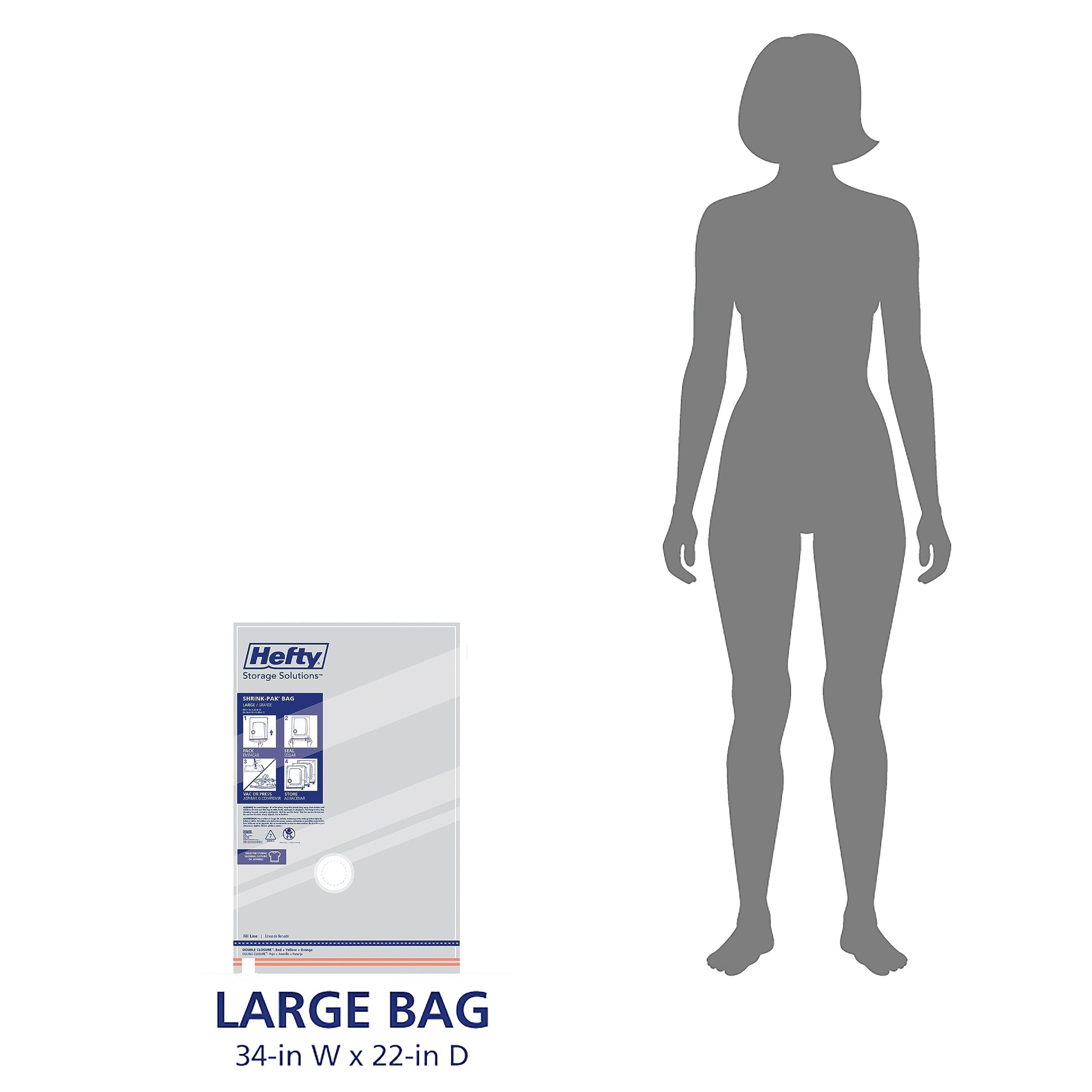 Space Saving Storage Solution: Hefty SHRINK-PAK vacuum storage bags are the perfect storage solution for seasonal clothing and bedding, offering maximum shrinkage and effectively saving space in your closet, suitcase or under your bed