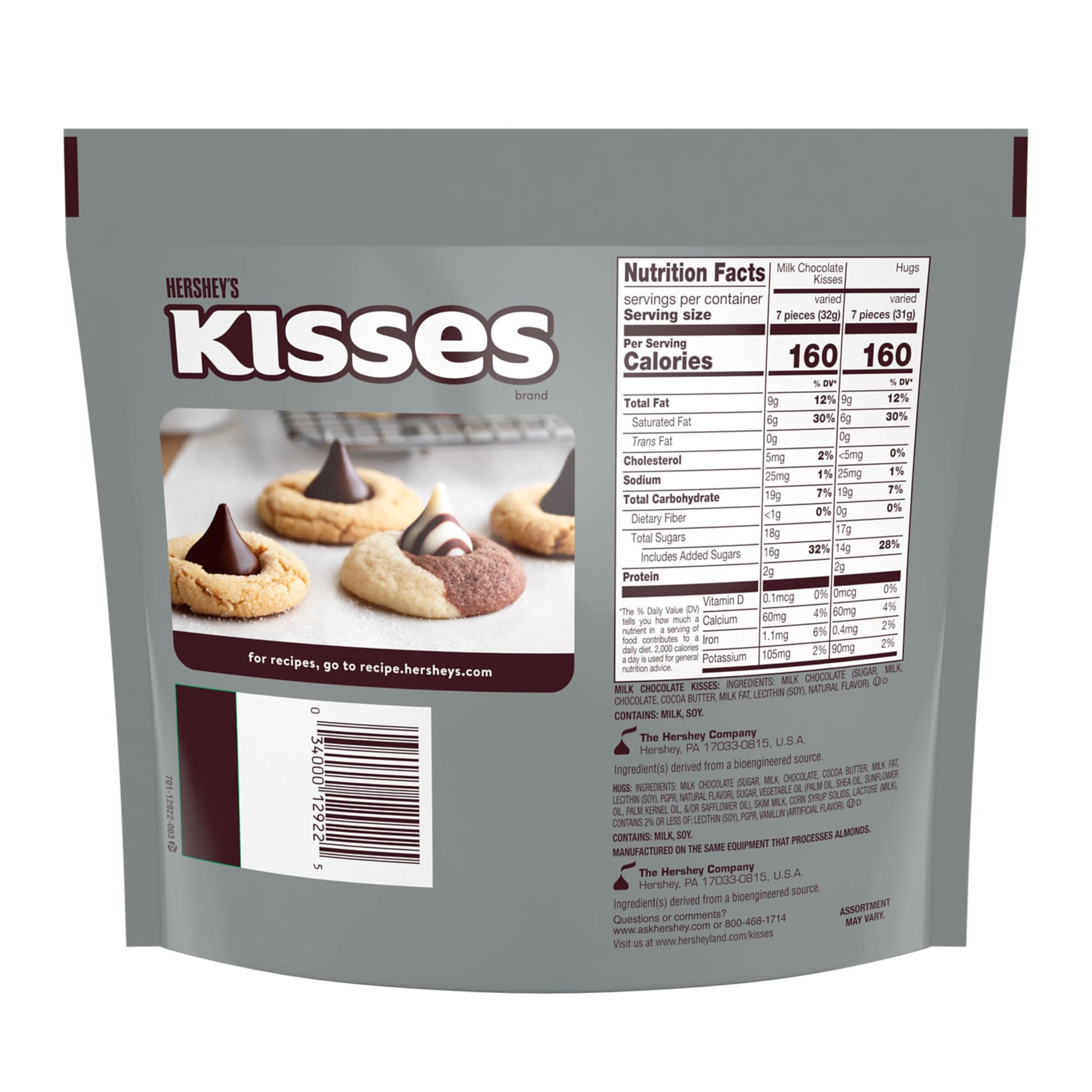 Details: Rich, delicious and perfectly smooth! If one of your love languages is receiving gifts, this HERSHEY'S HUGS & KISSES candy assortment includes two delicious, creamy chocolate treats perfect for just about any occasion that calls for sweets. HERSHEY'S HUGS candies are a delectable combination featuring HERSHEY'S milk chocolate hugged by sweet white creme, and HERSHEY'S KISSES candies are the classic milk chocolate treats you already know and love. Enjoy these bite size sweets anywhere and at any time, including on top of your best baked desserts for an extra bite of bliss.