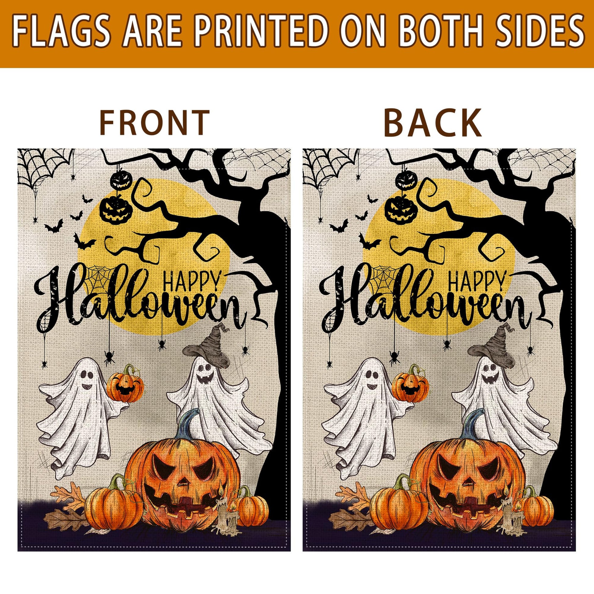 Hexagram Halloween Garden Flag, Halloween Flag 28 X 40 Double Sided, Ghost Happy Garden Pumpkin Flags For Outside Home Decor