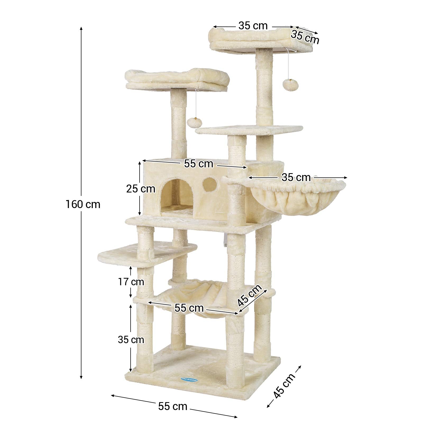 Hey-brother Cat Tree for Large Cats, Cat Tower with Scratching Posts, 2 Padded Plush Perches, Big Condo and Cozy Basket, Beige MPJ025M