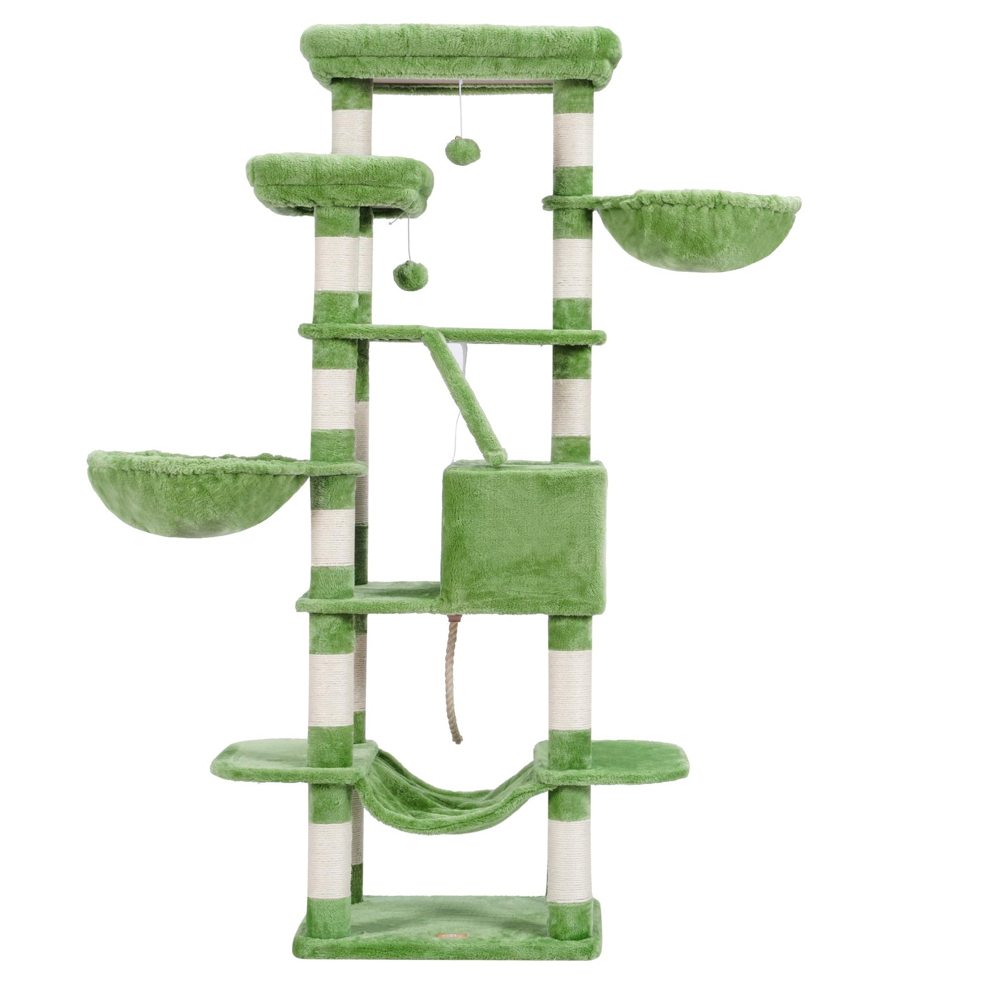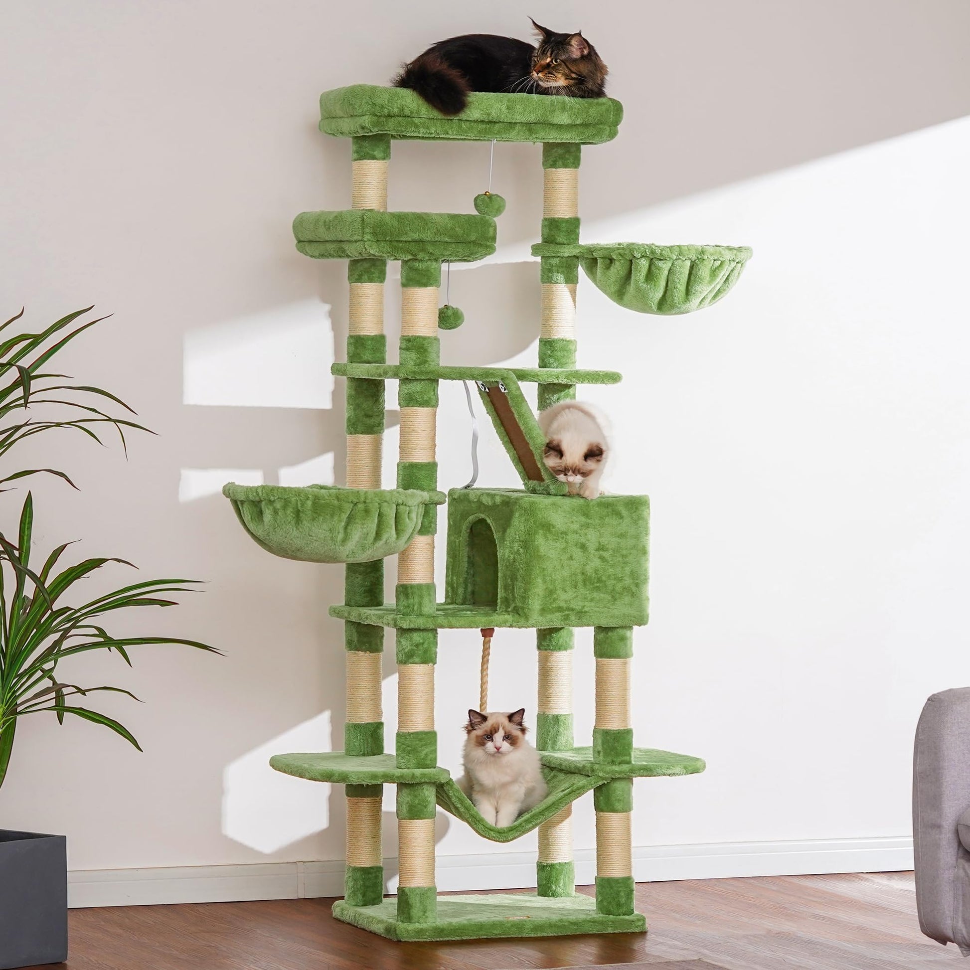 Heybly Cat Tree, 68 inch Multi-Level Cat Tower for Indoor Cats, 2 Widened Plush Perches Cat Condo with Scratching Board and Big Caves, Green HCT025GR