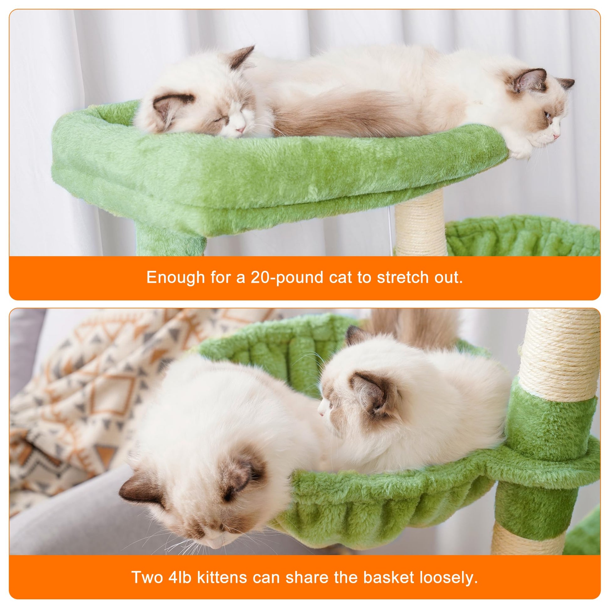 • [68' Tall, Multifunctional Design] Step-like jump multi-layer structure design of cat furniture, convenient for cat's scratching, climbing, sleeping, and exercising; The big cave, basket and hammock offer private space for catnap or hiding; Hammock to lounge and enjoy the leisure time