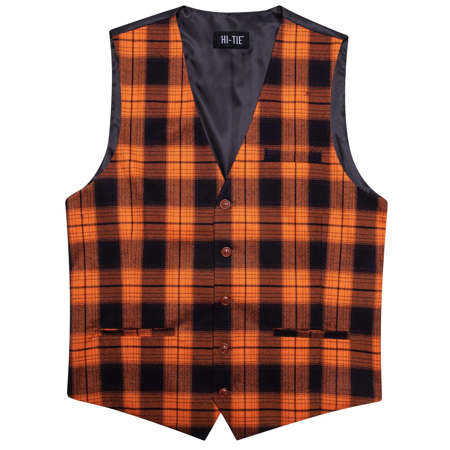 Hi-Tie Orange Black Halloween Suit Vest Mens Slim Fit Plaid Waistcoat 3 Pockets Formal Casual Tuxedo for All Saints' Day