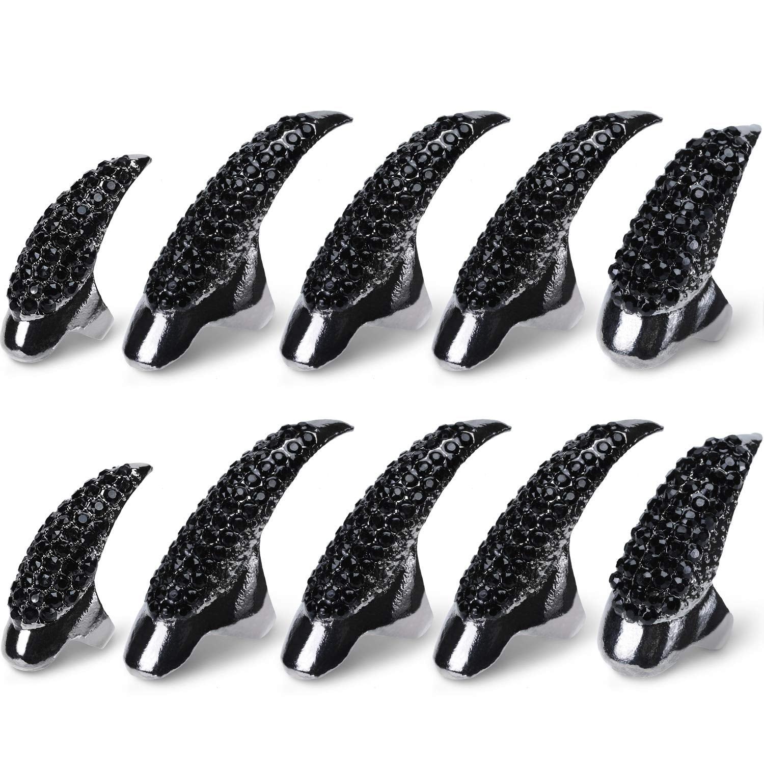 Hicarer 10 Pcs Halloween Gothic Nail Claw Ring Metal Punk Fake Nails Set Costume Full Finger Rings for Men Women Party Favor Cosplay Supplies, 3 Sizes