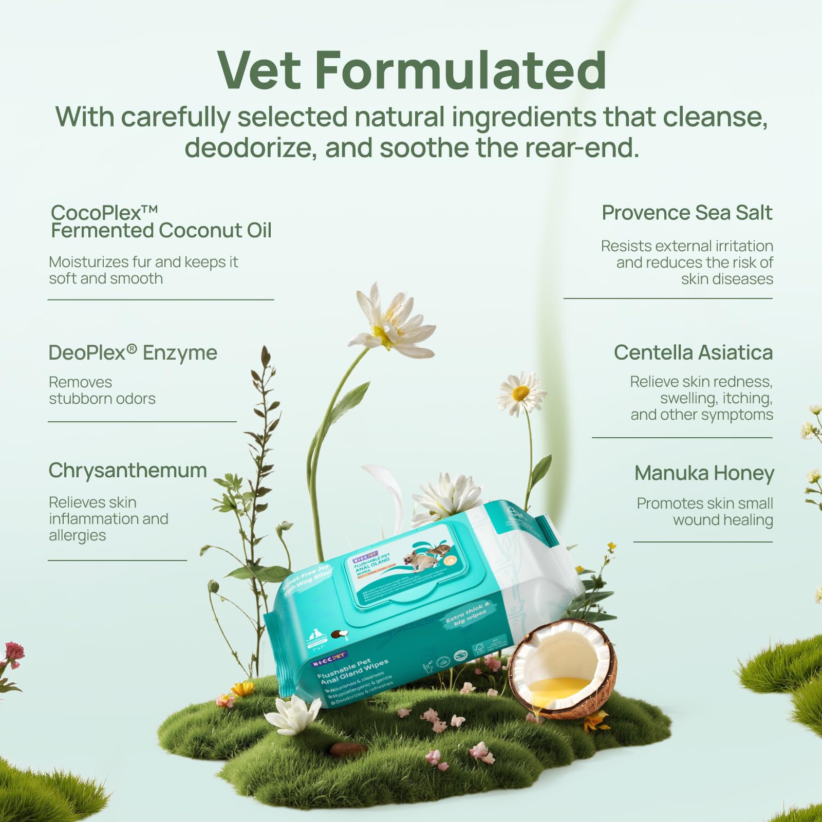 • SUPPORT PAW & ANAL GLAND HEALTH: 6 natural plant extracts of DeoPlex Enzyme, Fermented Coconut Oil, Provence Sea Salt, Manuka Honey, Chamomile and Centella Asiatica. DeoPlex enzymes, a USDA NOP certified organic enzyme, quickly remove stubborn discharge and odor, while other extracts cleanse, soothe, moisturize, and support skin health.