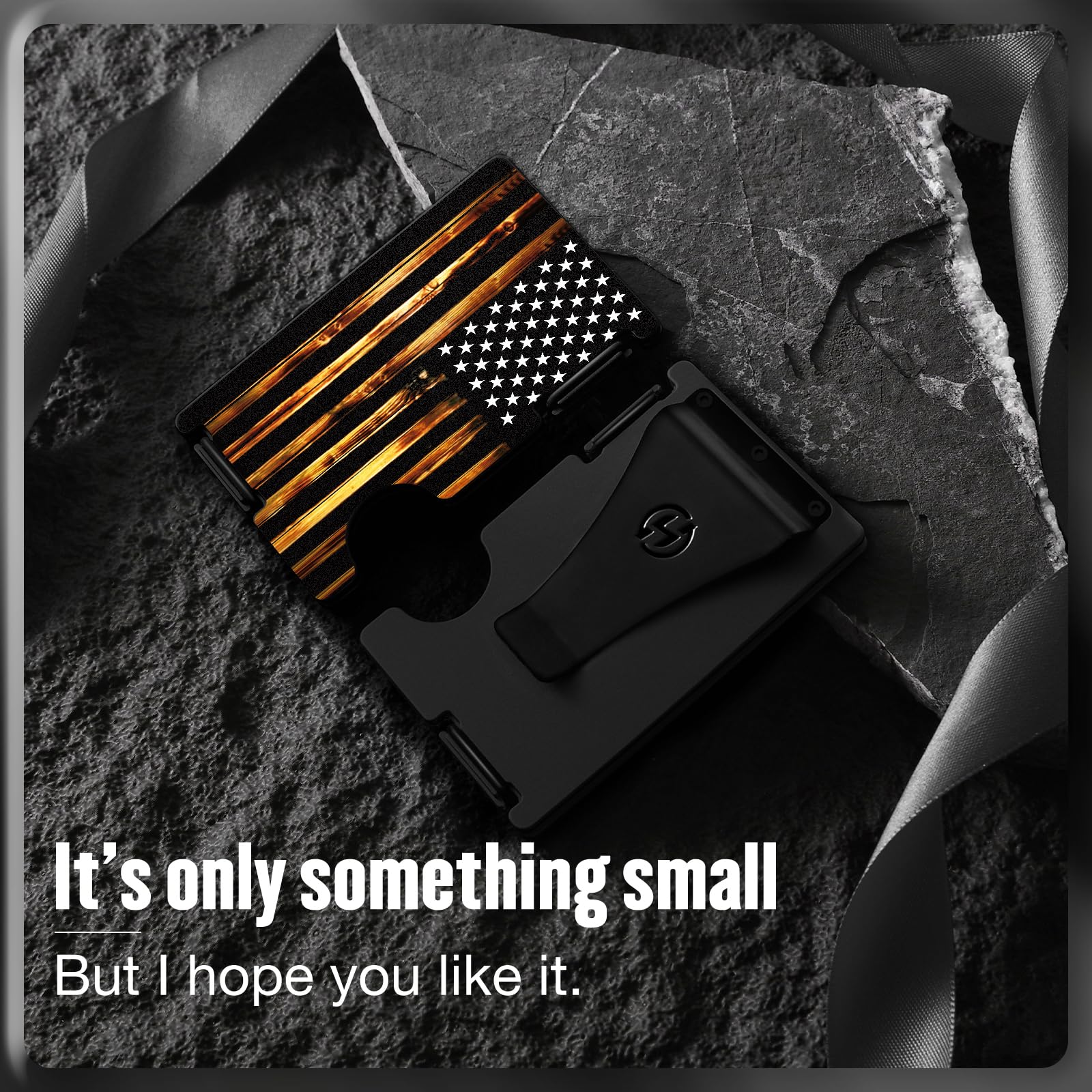 HIESGIE Minimalist Wallet for Men, Wood Grain American Flag, Mens USA Gifts, Metal Card Holder with Money Clip, Slim Front Pocket Wallet