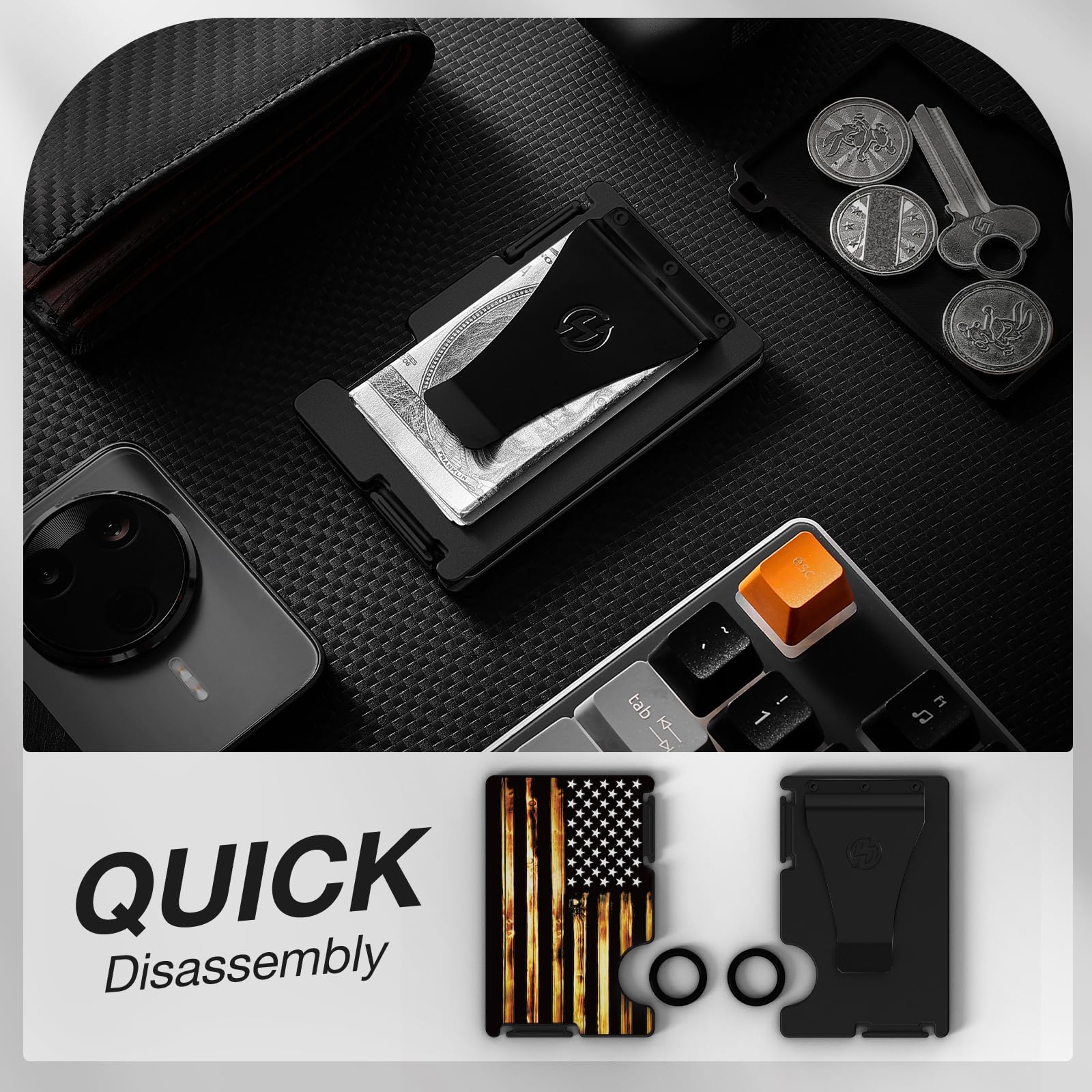 • Innovative Cardholder - Features 2 silicone loops, it can be easily disassembled without any tools. The aluminium wallet comes with a money clip to keep your bills organized and easily accessible