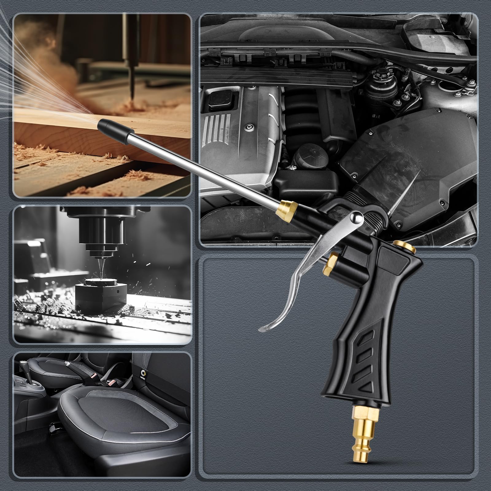 • 【Longer Air Hose Nozzle】:SARDVISA Air nozzle blow gun set is equipped with 13.7-inch flexible extension hose, help you extend to car engine compartment, seat crevices and other narrow Spaces to finish dust blow clean working.