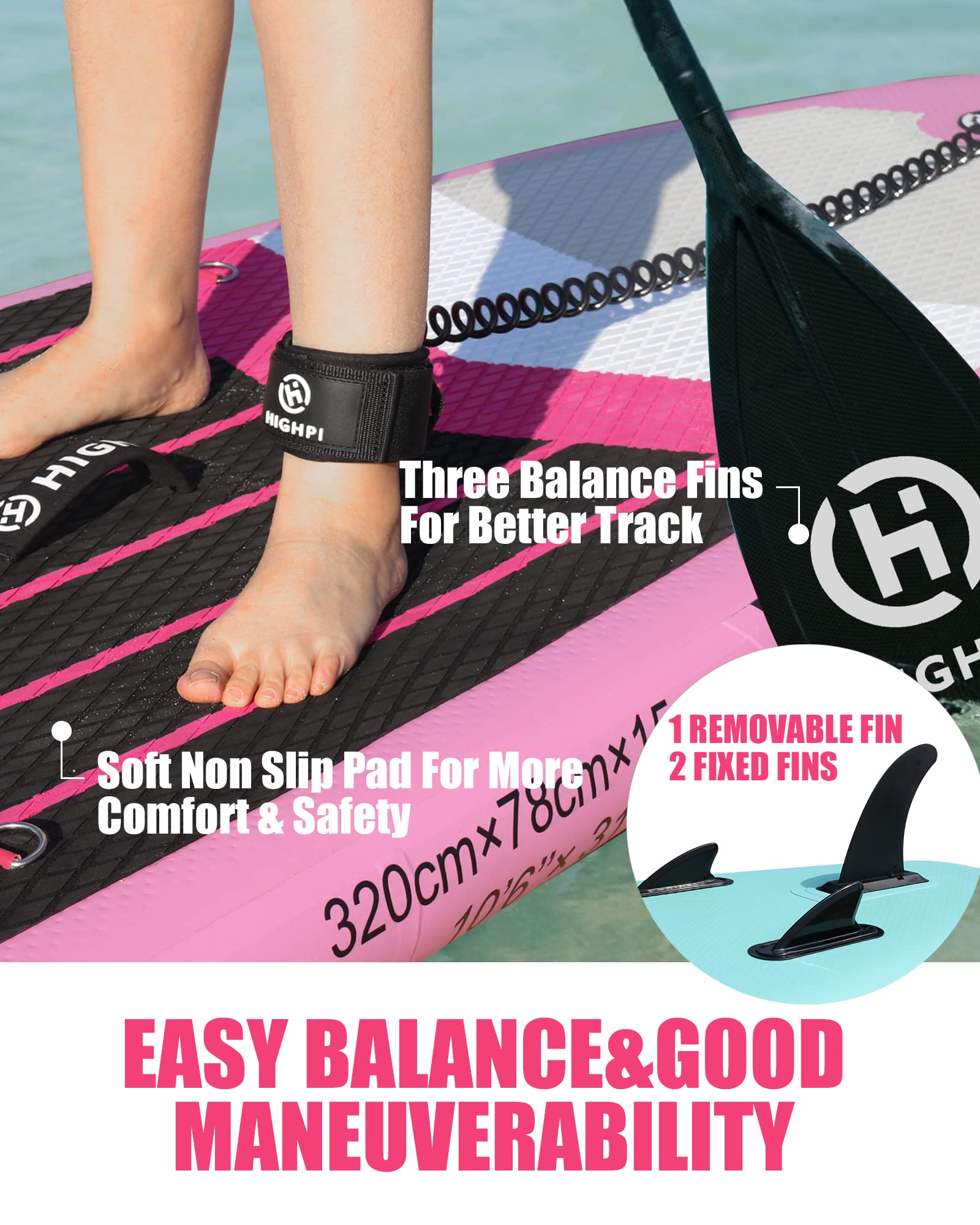 Highpi 10'6'' Inflatable Stand Up Paddle Board for Youth and Adults – Wide Sup with Premium Accessories, Blow Up Paddleboard for Surfing, Fishing, Yoga & More