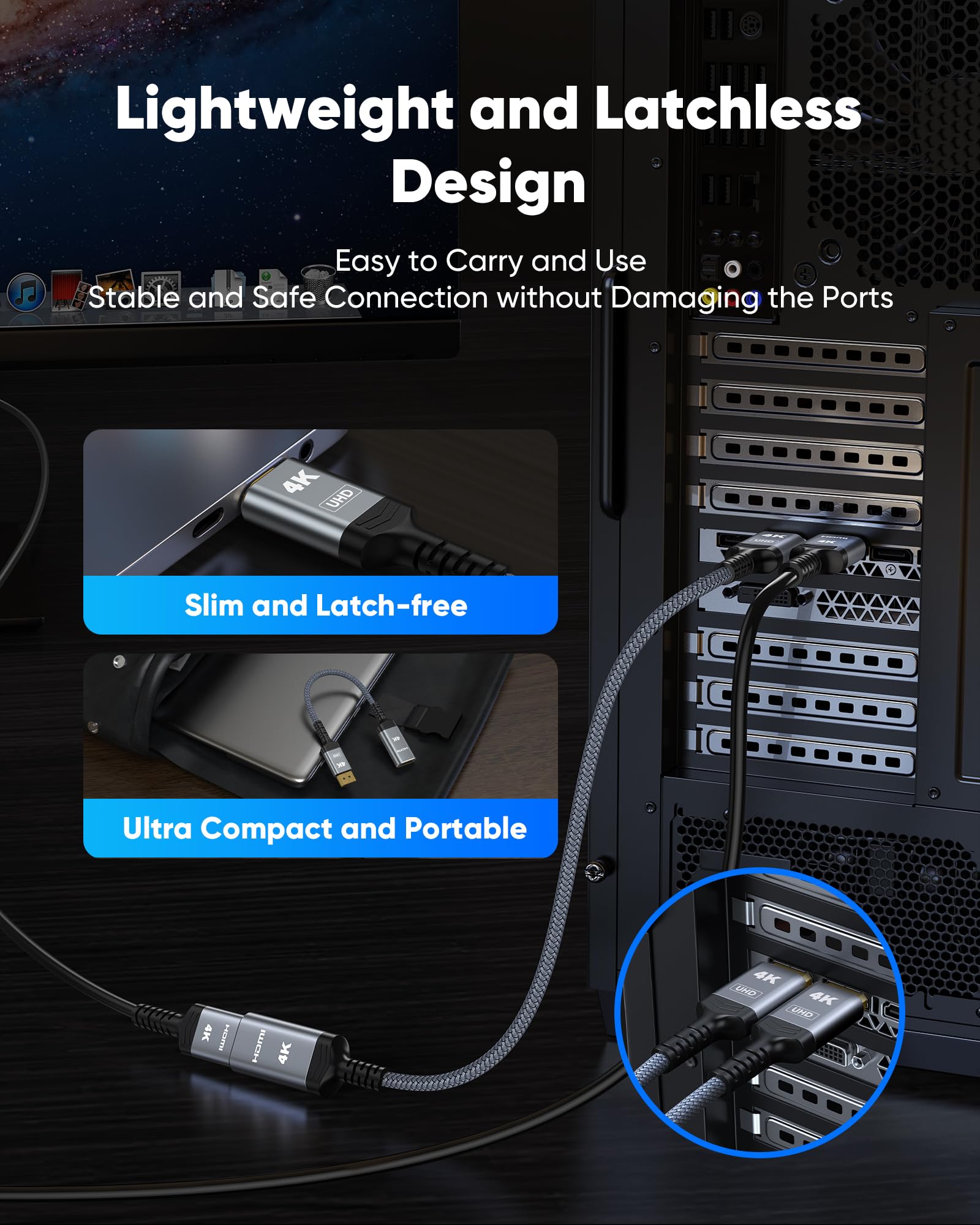 • WIDE COMPATIBILITY: Perfect for graphics card (AMD, NVIDIA), desktops (HP, Dell, Lenovo) with Display Port connections, this cable delivers vibrant, realistic 4K resolution and smooth 3D visuals to large screens. (Note: Monitor - to - Monitor/ TV connection is not supported. The monitor has no data output function. A data output source is required)
