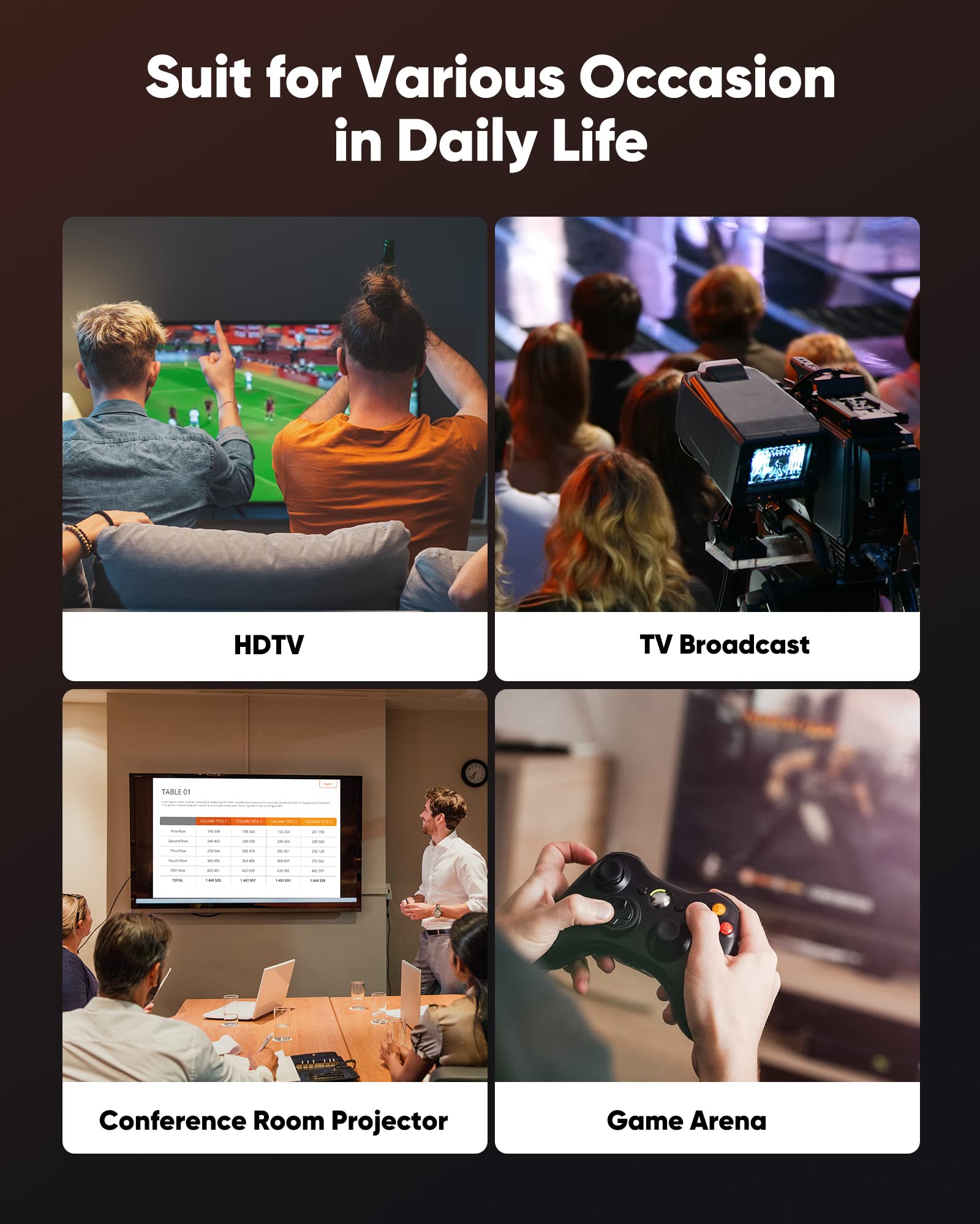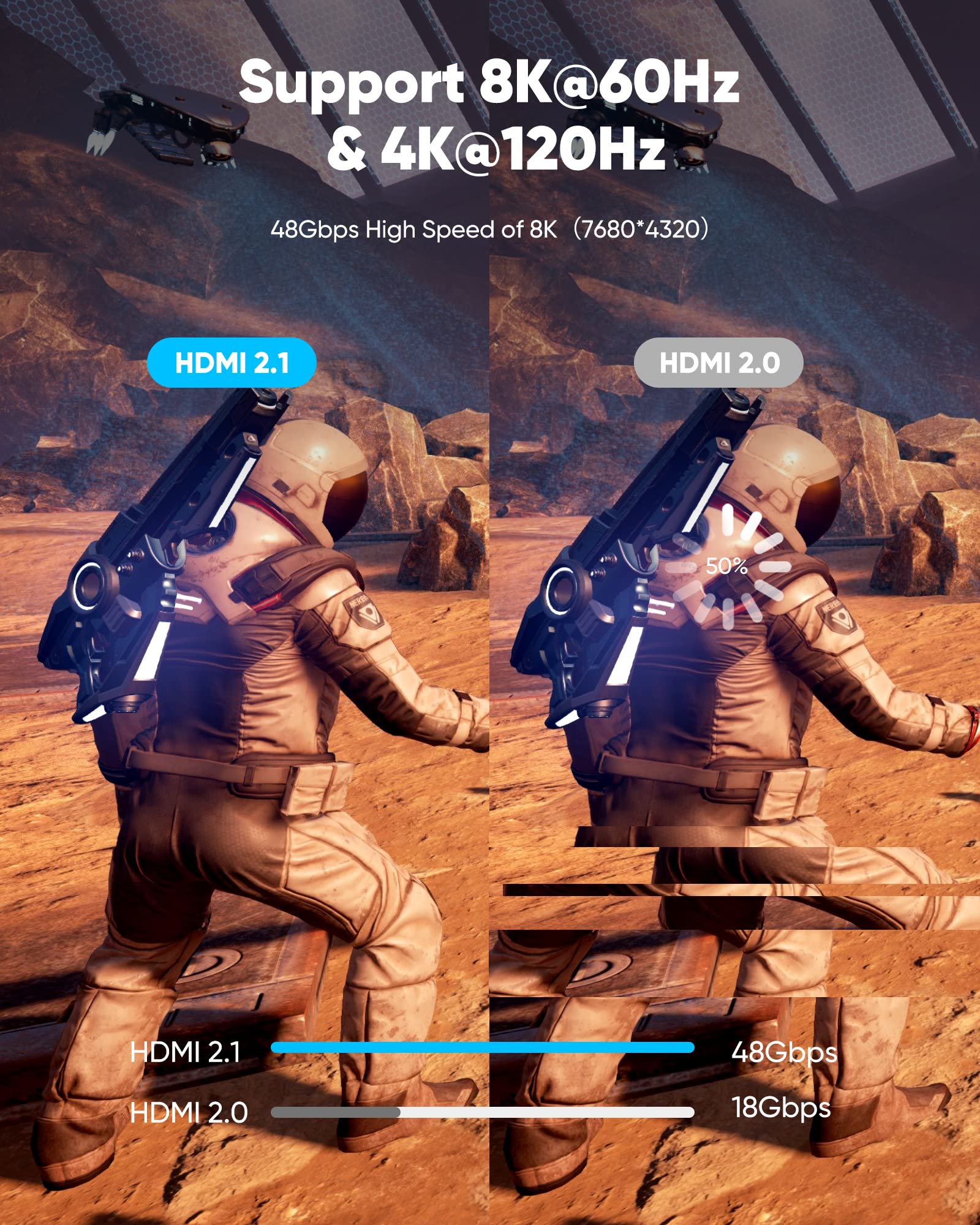 • For Game Enthusiasts: This 8K Ultra High Speed HDMI Cable can achieve a super smooth picture of 4K@120HZ; Its latest game mode supports variable refresh rate, maximizes the value of the graphics card and CPU to obtain a smoother and more detailed picture