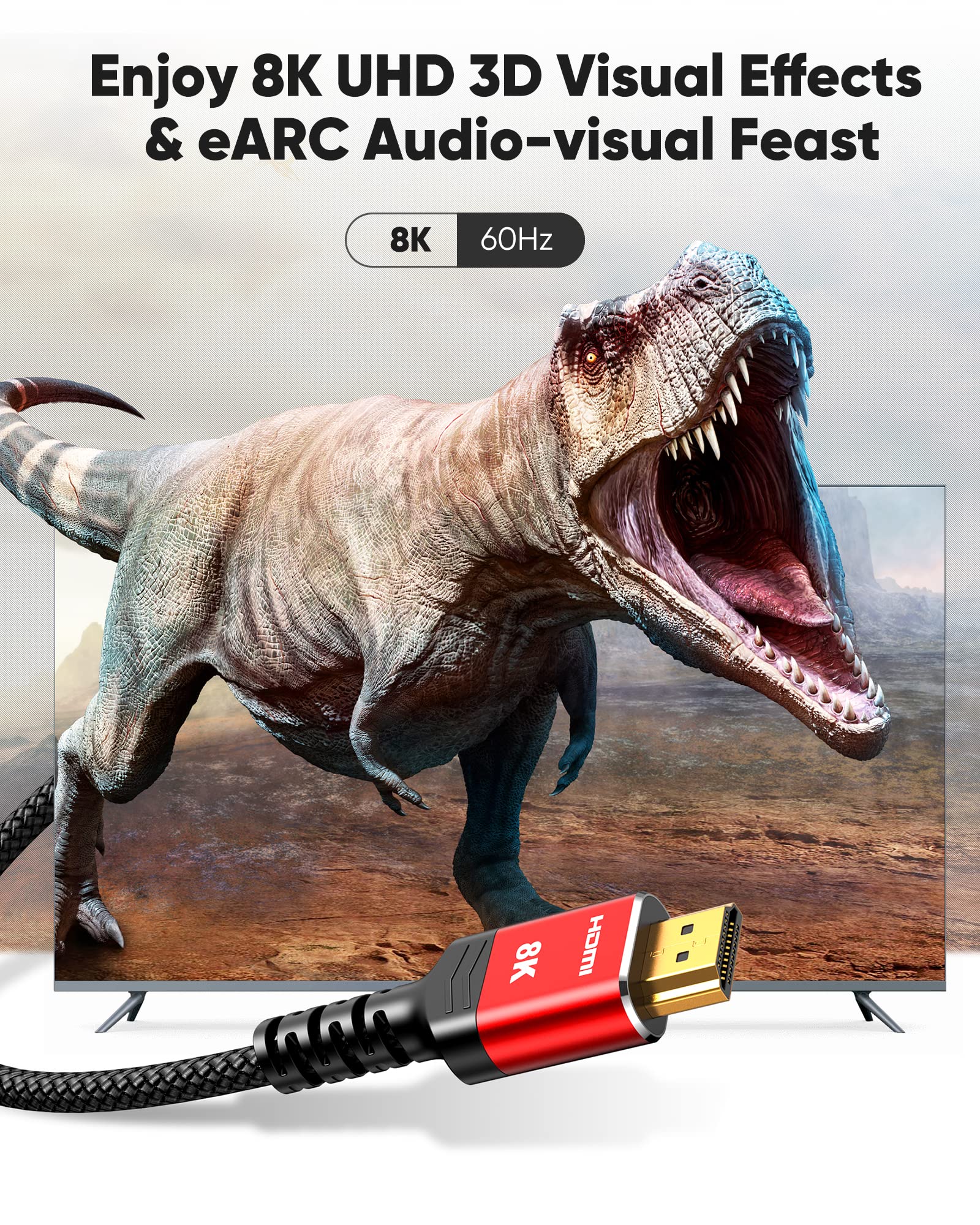 • Top Technology----8K@60HZ: This 8K Ultra High Speed HDMI Cable uses the most cutting-edge technology, is compatible with 8K@60HZ and 4K@120HZ, clearly displays every particle, and accurately processes every signal source