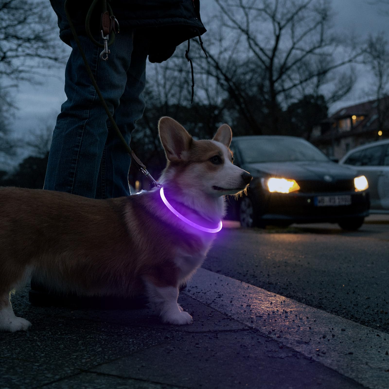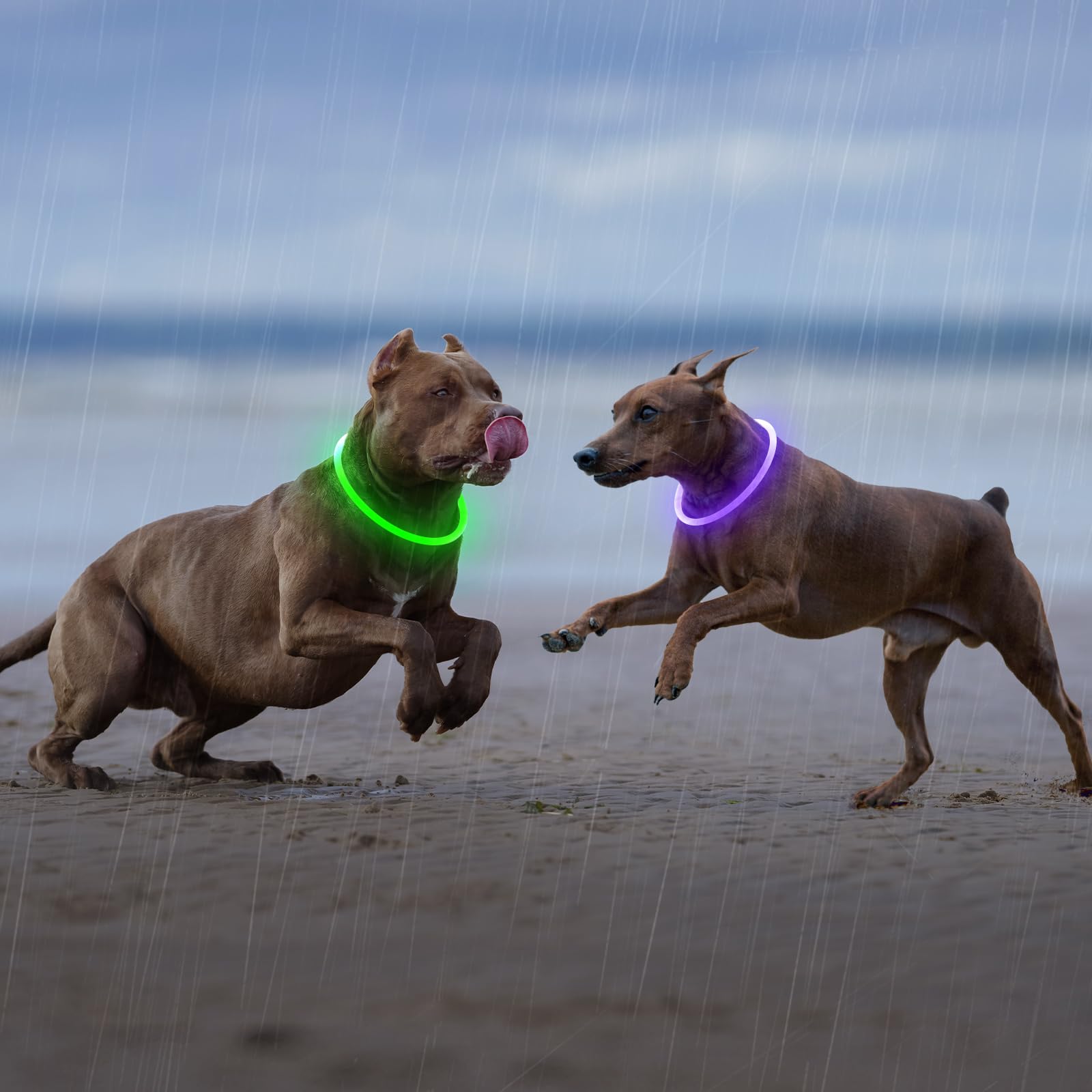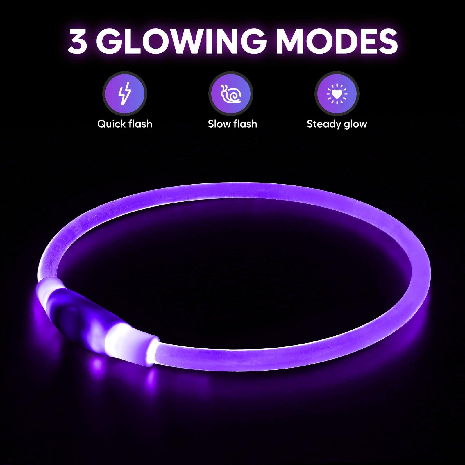 HIGO Light Up Dog Collar, LED Dog Collar for Night Safety with 3 Modes, Type-C Rechargeable & Adjustable TPU Material for Small Medium Large Dogs (Purple)