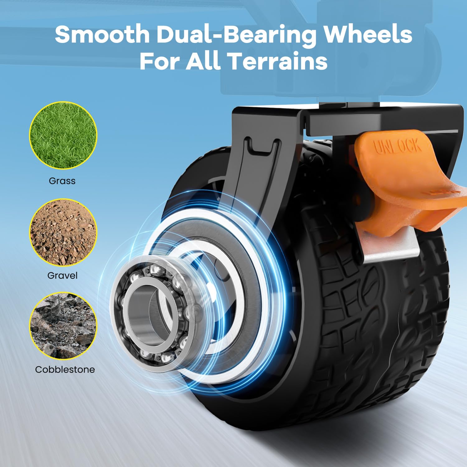 • ▶All-terrain Wheels : Imagine tackling the toughest of terrains with ease and grace – that's what Hikzest collapsible folding wagon promises with its formidable wider wheels. These giants of the road grip firmly, allowing you to conquer mud, slick grass, rugged trails, and even unexpected obstacles with a smile on your face.