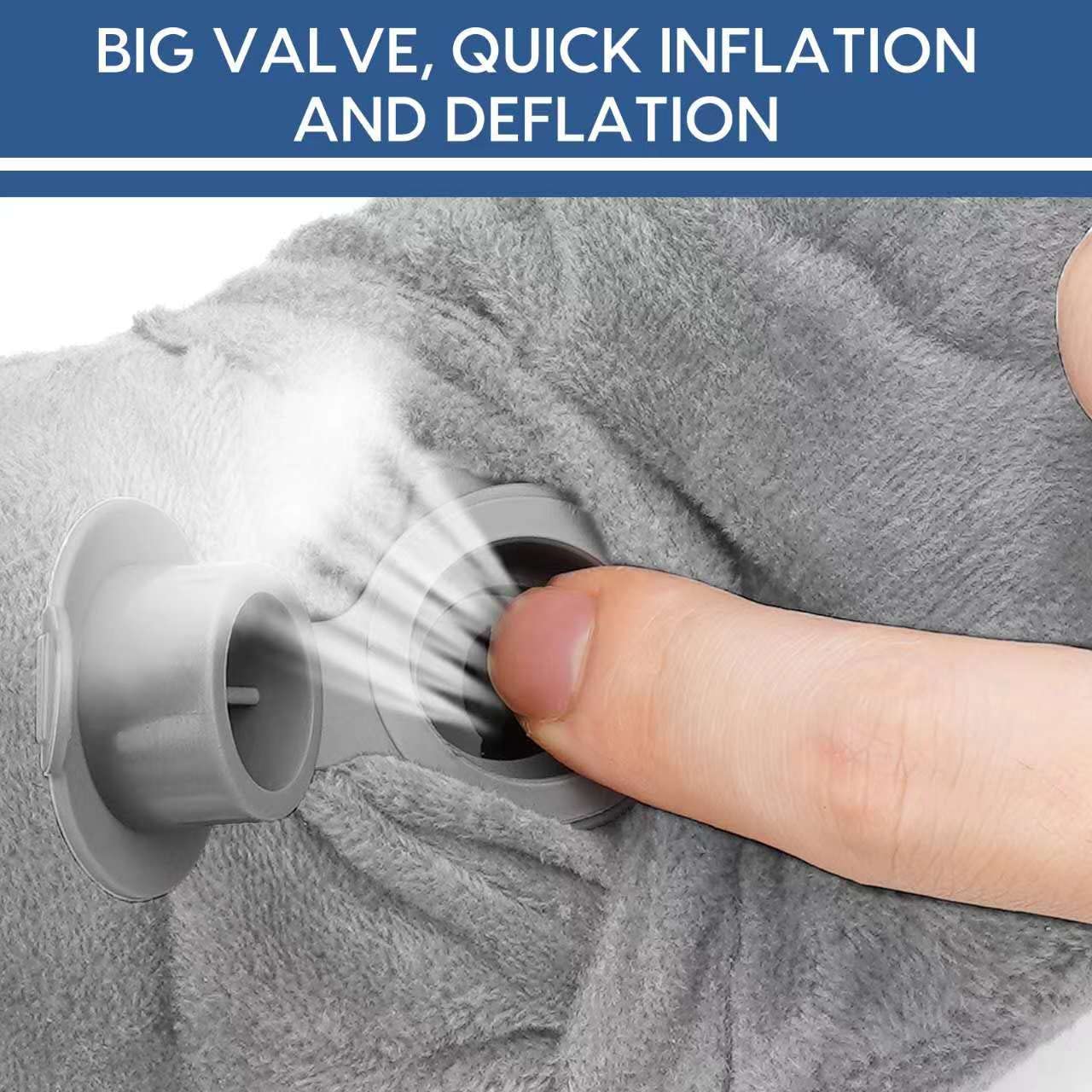 • EASY TO INFLATA: This inflatable travel pillow is equipped with a updated version of large inflatable Valve that allows you to inflate it quickly in 3~5 breaths. The hardness of the neck pillow can also be adjusted by the amount of air to provide you the most comfortable support.