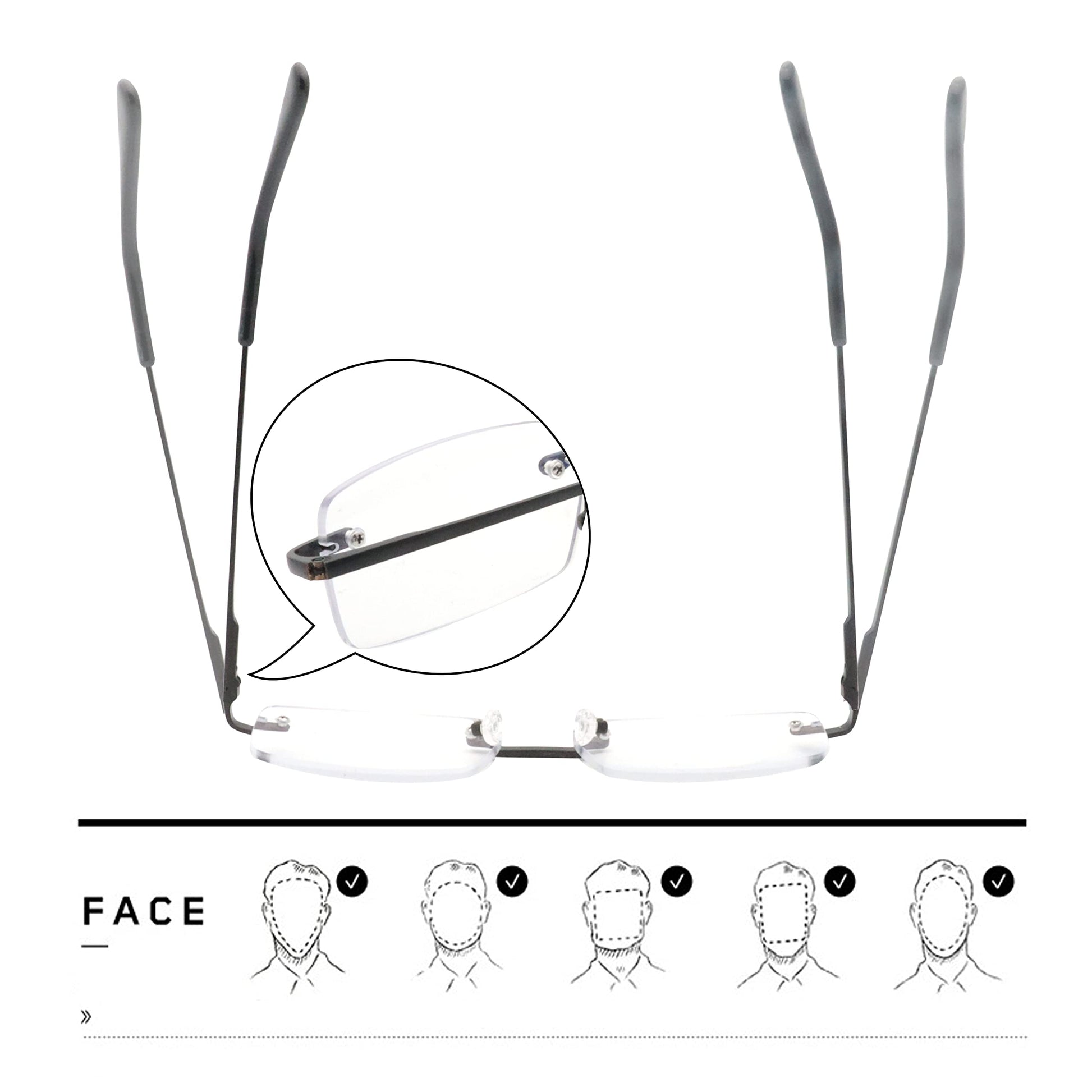 • These rimless glasses, your field of vision is more open The frameless reading glasses are more suitable in matching costumes. They are suitable for office and leisure, men and women. We believe that this fashion frameless design could help you to show your charm and personality!