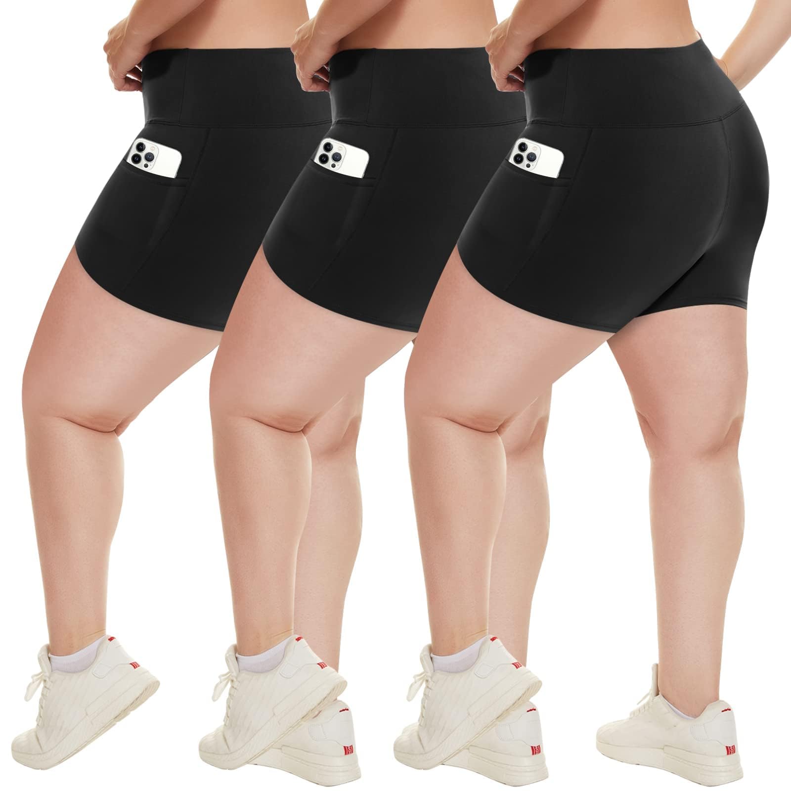 HLTPRO 3 Pack Plus Size Biker Shorts with Pockets for Women - 5" High Waist Soft Spandex Workout Yoga Running Shorts (2X, 3X)