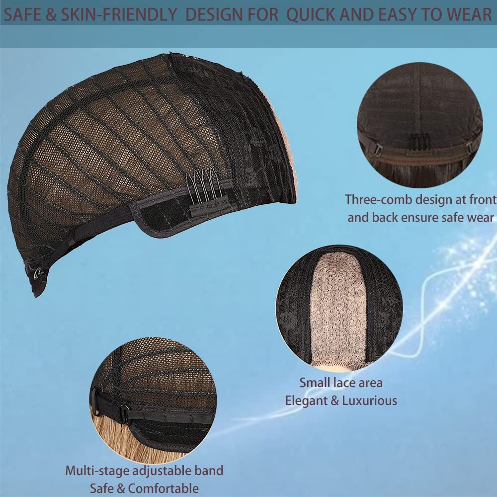 • 【Thoughtful & Comfortable & Secure Fit & Top-class Quality】Comfortable & Ventilation Wig Net with Premium and Truly Skin-friendly Material, Thoughtful Three-comb Inner Design, Extra Elastic Straps Inside the Wig Net, Tested and Optimized Hair Volume Design, all to give you a safe and comfortable wearing experience with this 26 inch long brown ombre blonde middle part curly wig