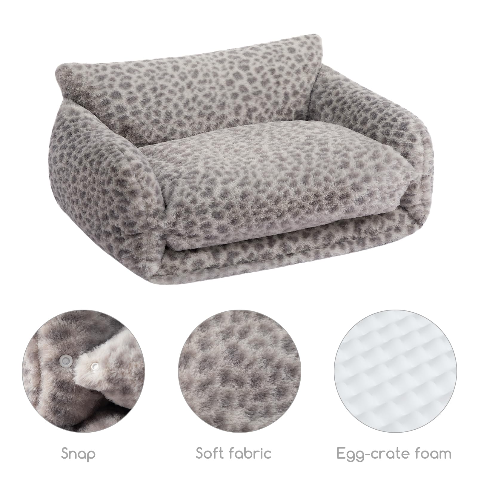 Hollypet Cat Bed Fluffy Plush Mutifuctional Double-Layer Soft Pet Couch Orthopedic Sofa Nest Beds for Small Cats and Dogs, Snow Leopard (21x15x8 inch)