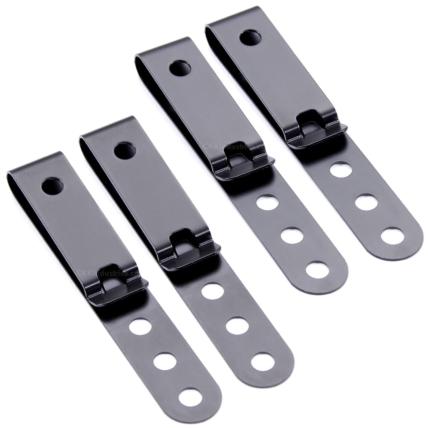 HolsterSmith Universal Metal Belt Clip for Holster Making - (Model 5) - (3-Hole) - (Tactical Black) - (4 Pack)