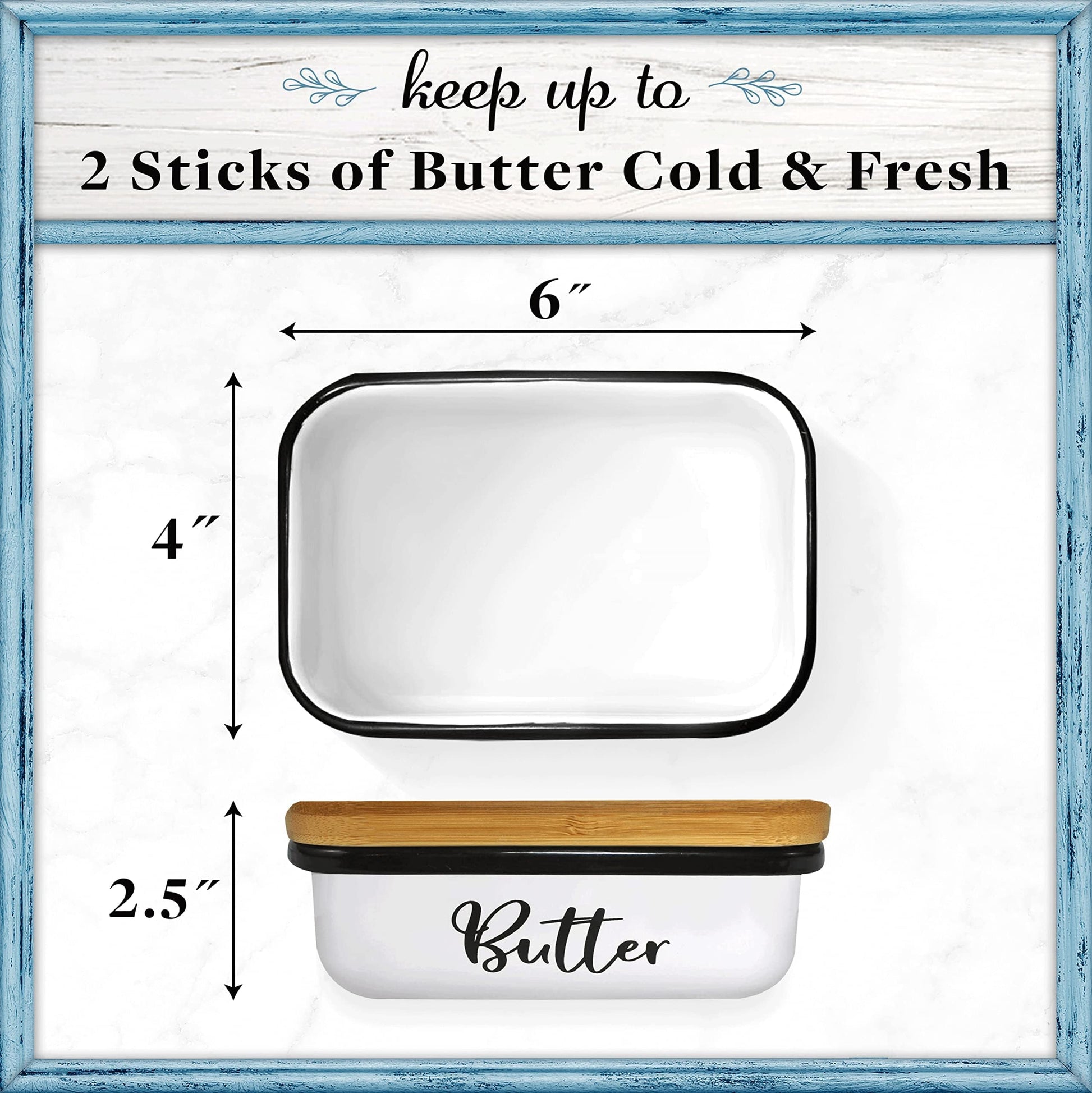 • Deep Design: No more butter sticking to the lid! This farmhouse butter dish has a deep 6 x 4 x 2.5 inch frame to keep the butter from making a mess.