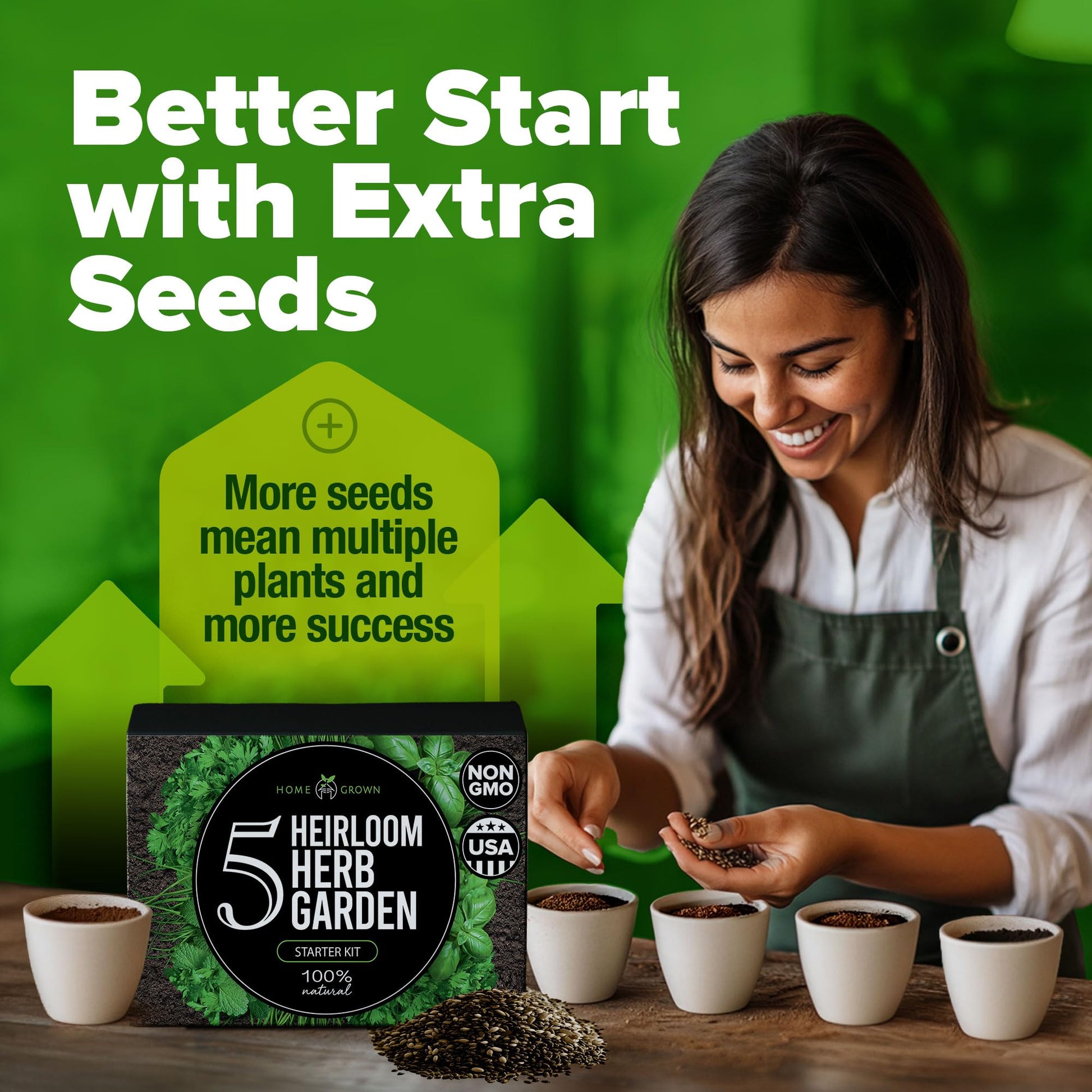 HOME GROWN Indoor Herb Garden Starter Kit - Christmas Gift for Gardeners - Complete 5 Herb Plant Grow Kit - Unique Gift for Mom, Women, Her, Men - Birthday Gift