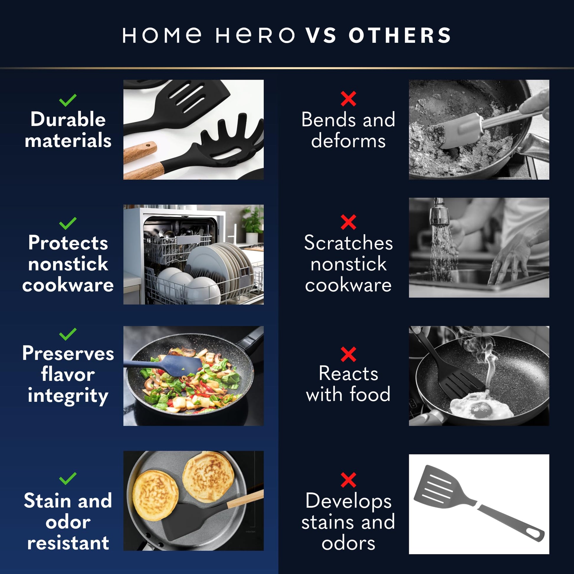 Home Hero 44 Pcs Silicone Kitchen Utensils Set, Non-Stick Silicone Cooking Utensils Set with Spatula, Wooden Handle Spatula, Silicone Kitchen Gadgets Utensil Set (44 Pcs - Black)