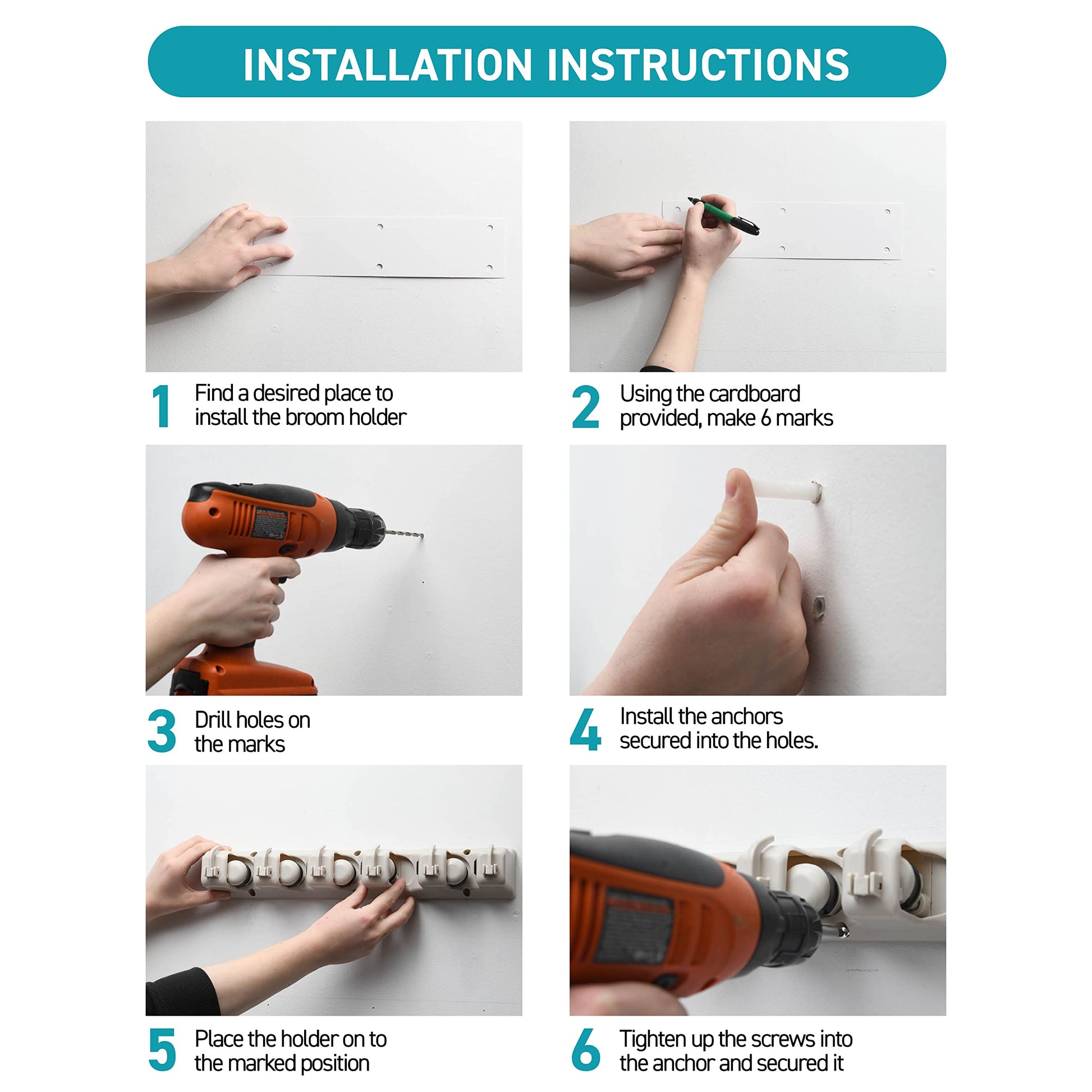 • Easy To Mount Garage Storage Solutions - Included with the garage organizers are screws, anchors, a drilling template, and a guide–everything you'll need to mount this mop hanger indoors or outdoors!