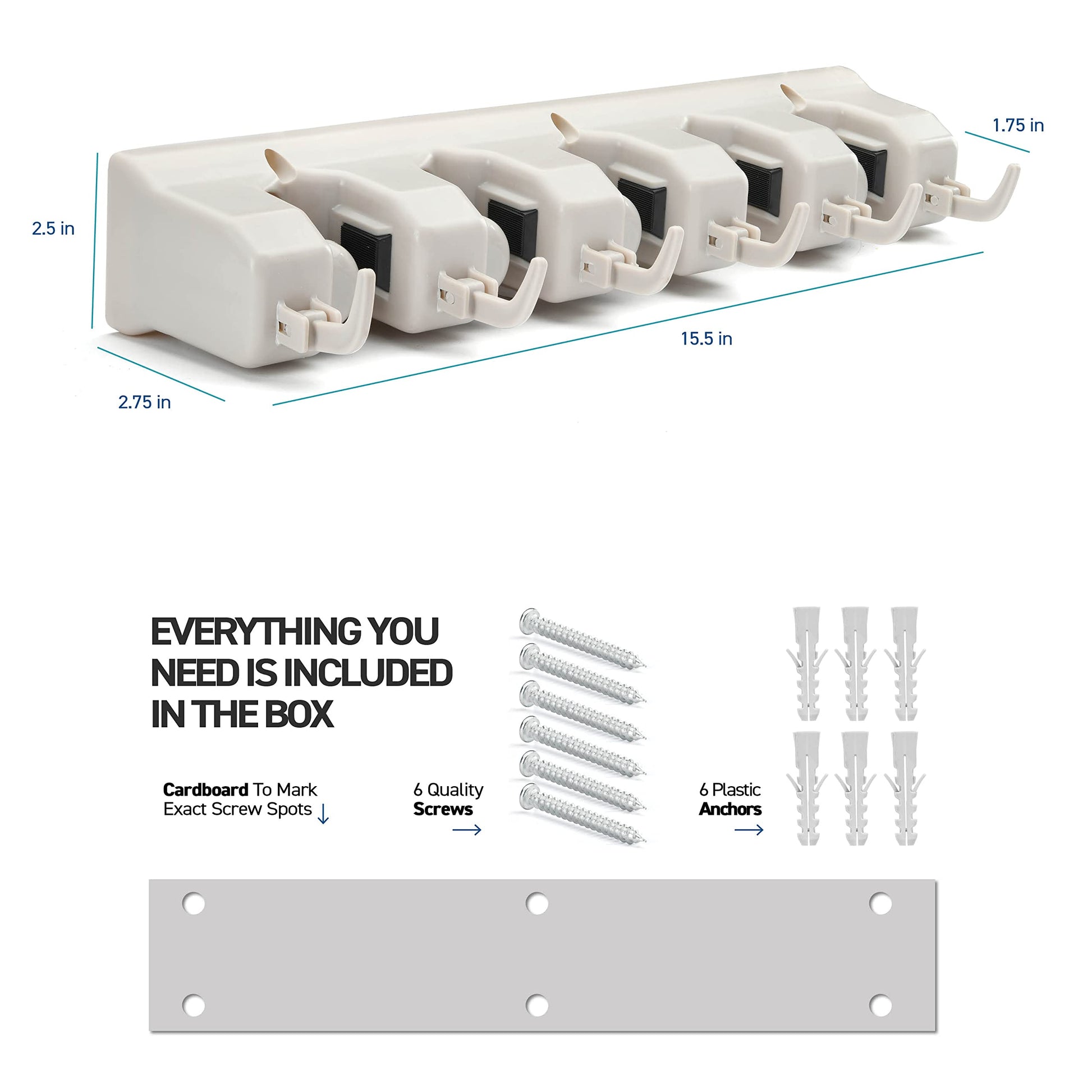 Home-it Mop and Broom Holder Wall Mount Garden Tool Storage Tool Rack Storage & Organization for the Home Plastic Hanger for Closet Garage Organizer (5-position)