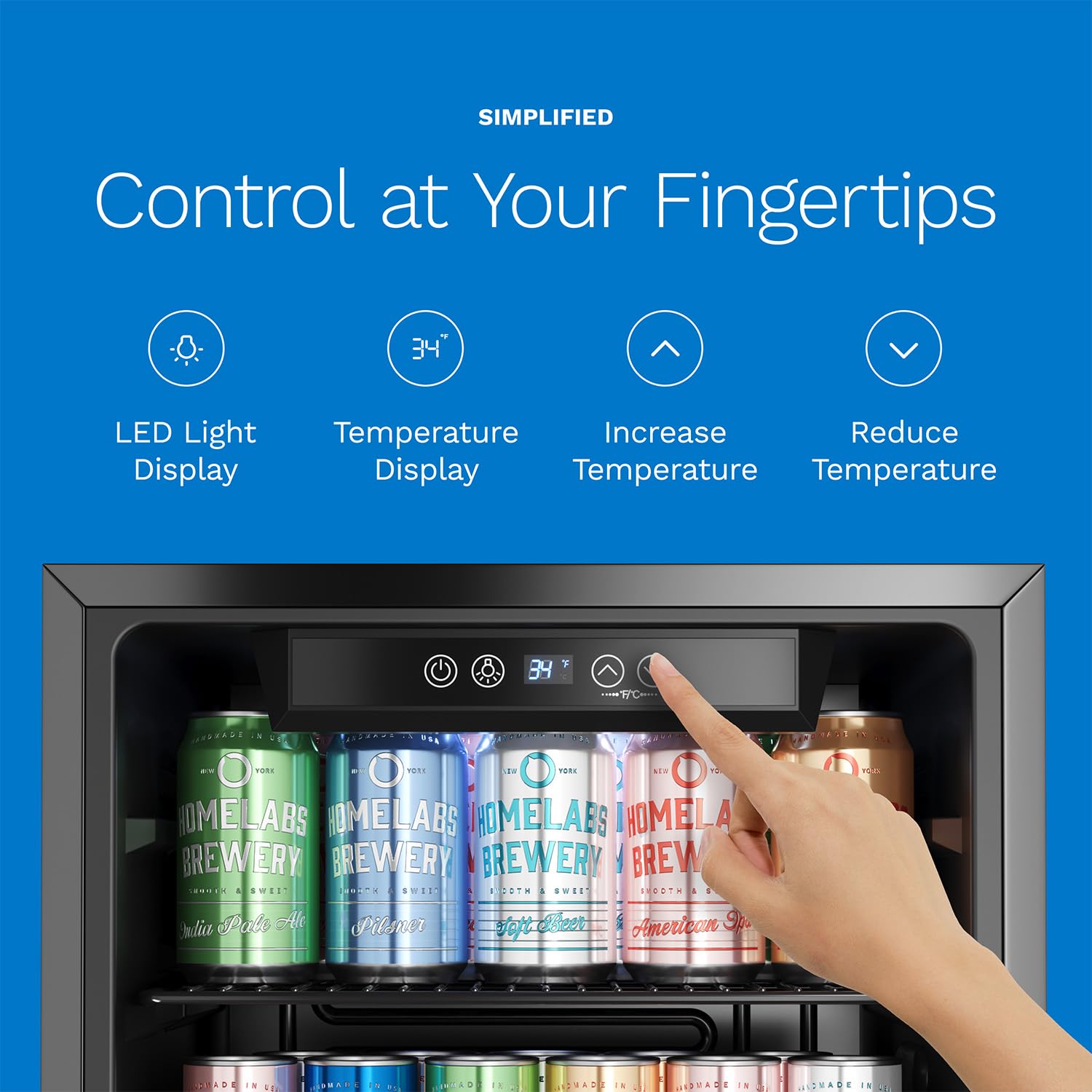 • Digital Control: Easy touch temperature control cools down to 34 degrees Fahrenheit; Features a digital display and memory function to restore preset temperature if unplugged