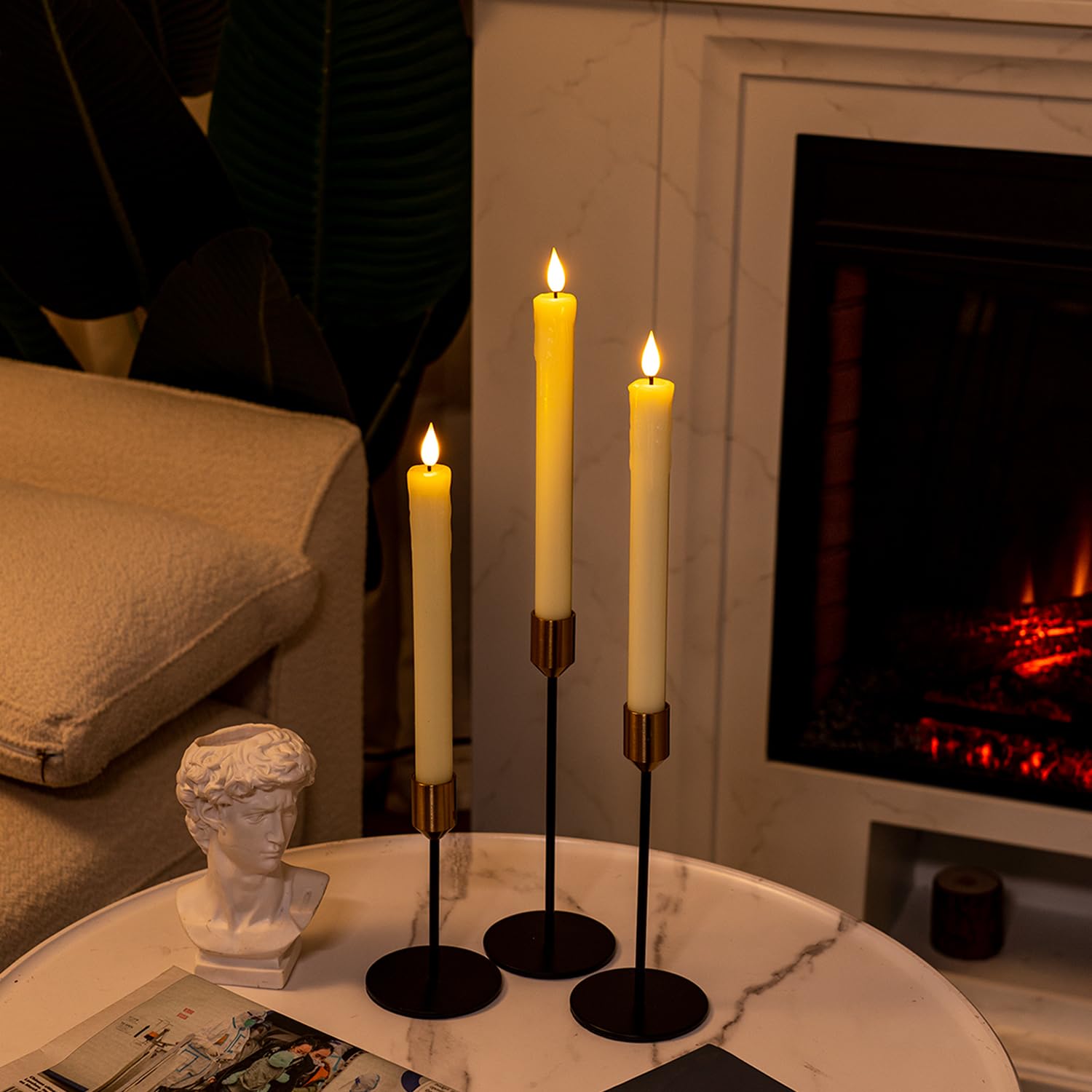 • Realistic 3D Flame: The design of a 3D flame with flickering warm yellow light makes the candle more realistic. All the candles will emit flickering warm light in the room by the candle modes. It will give the room a sense of warmth and security that true candles could not provide.