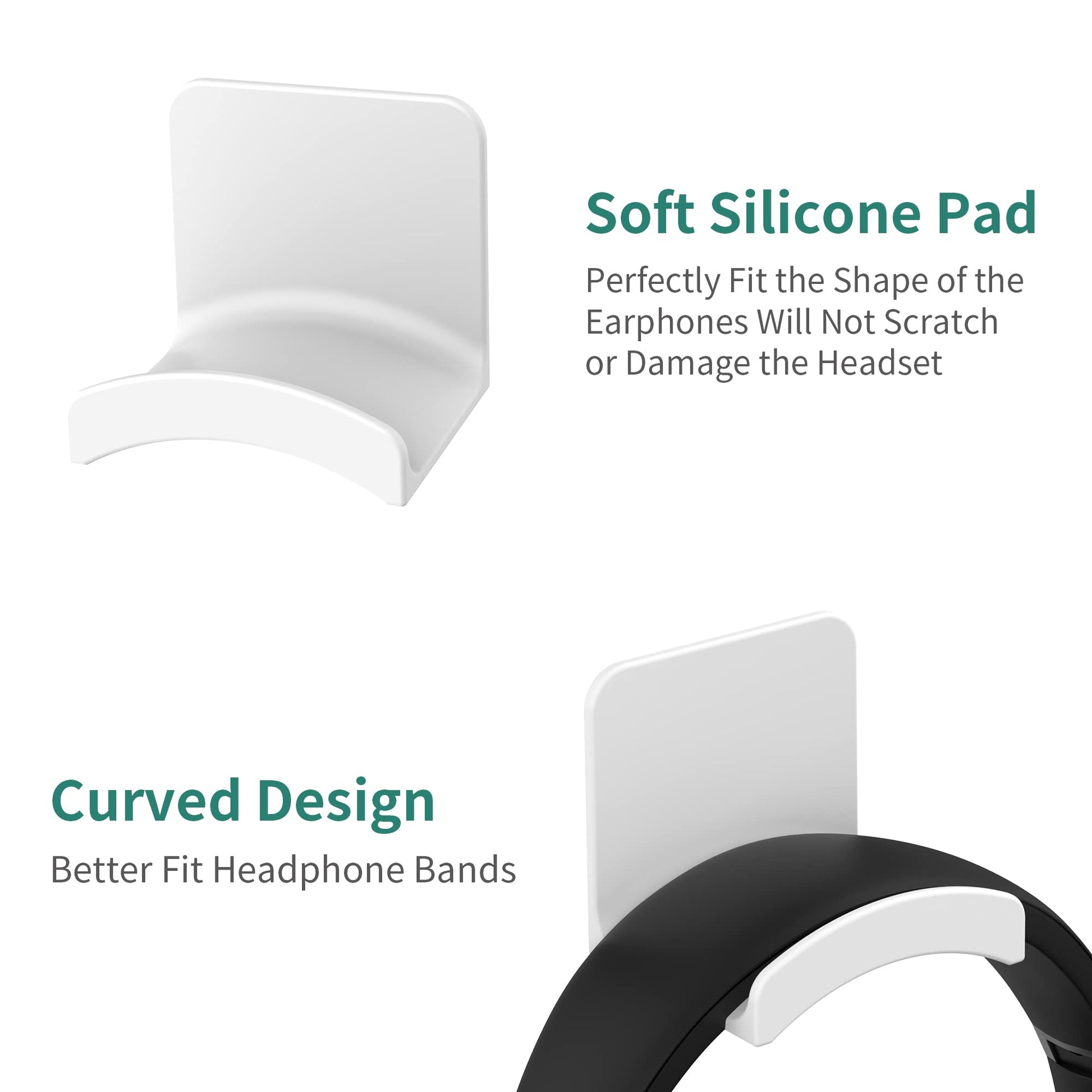 HomeMount Headphone Stand Headset Holder - Adhesive Gaming Headphone Hanger Hook Desk Mount for Most Headphone & Controller (White)