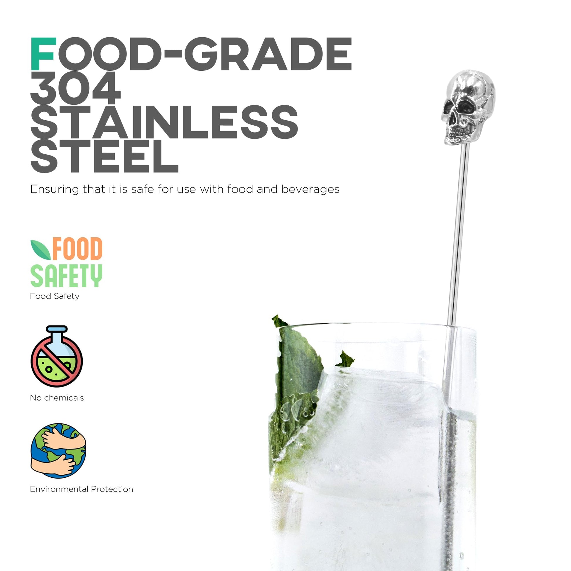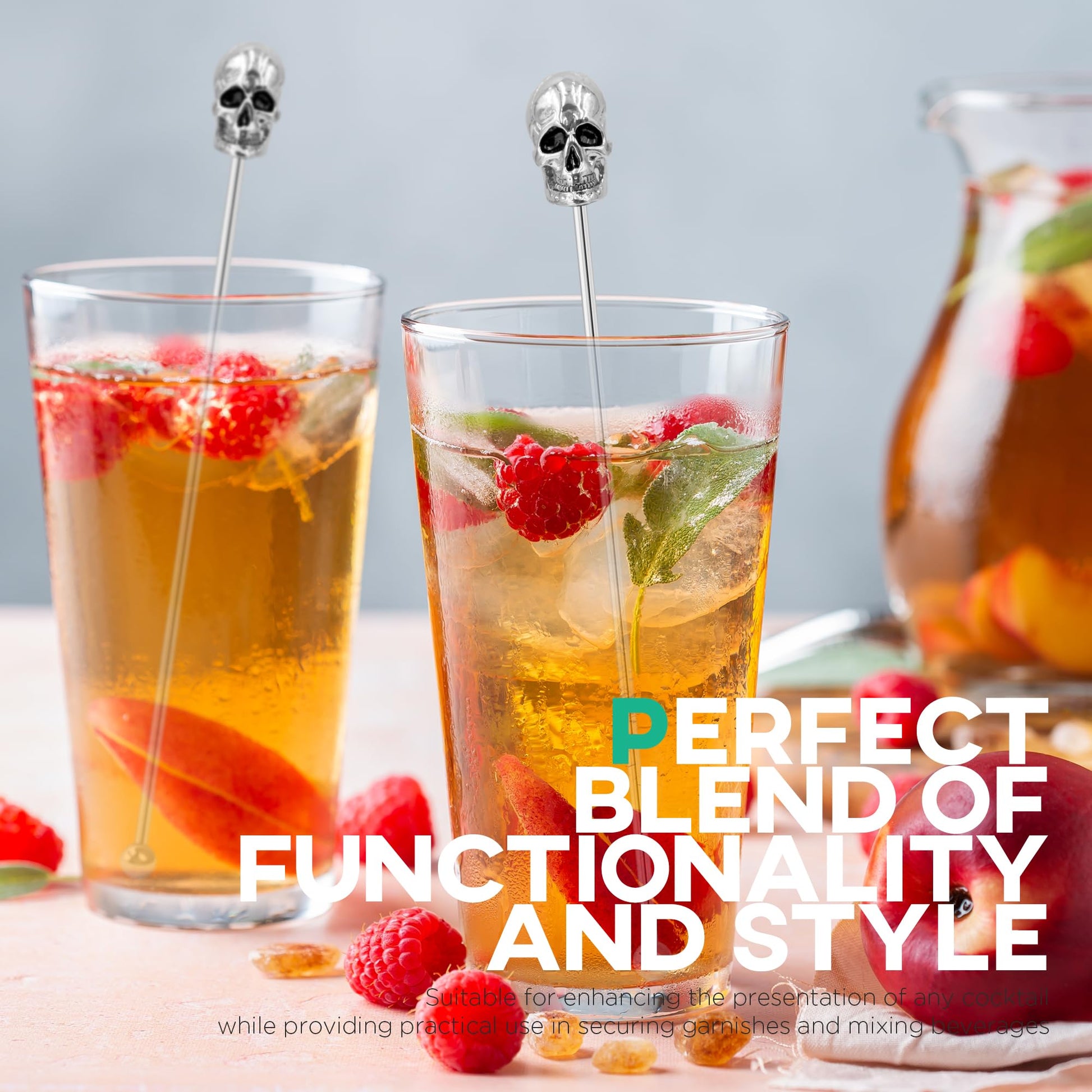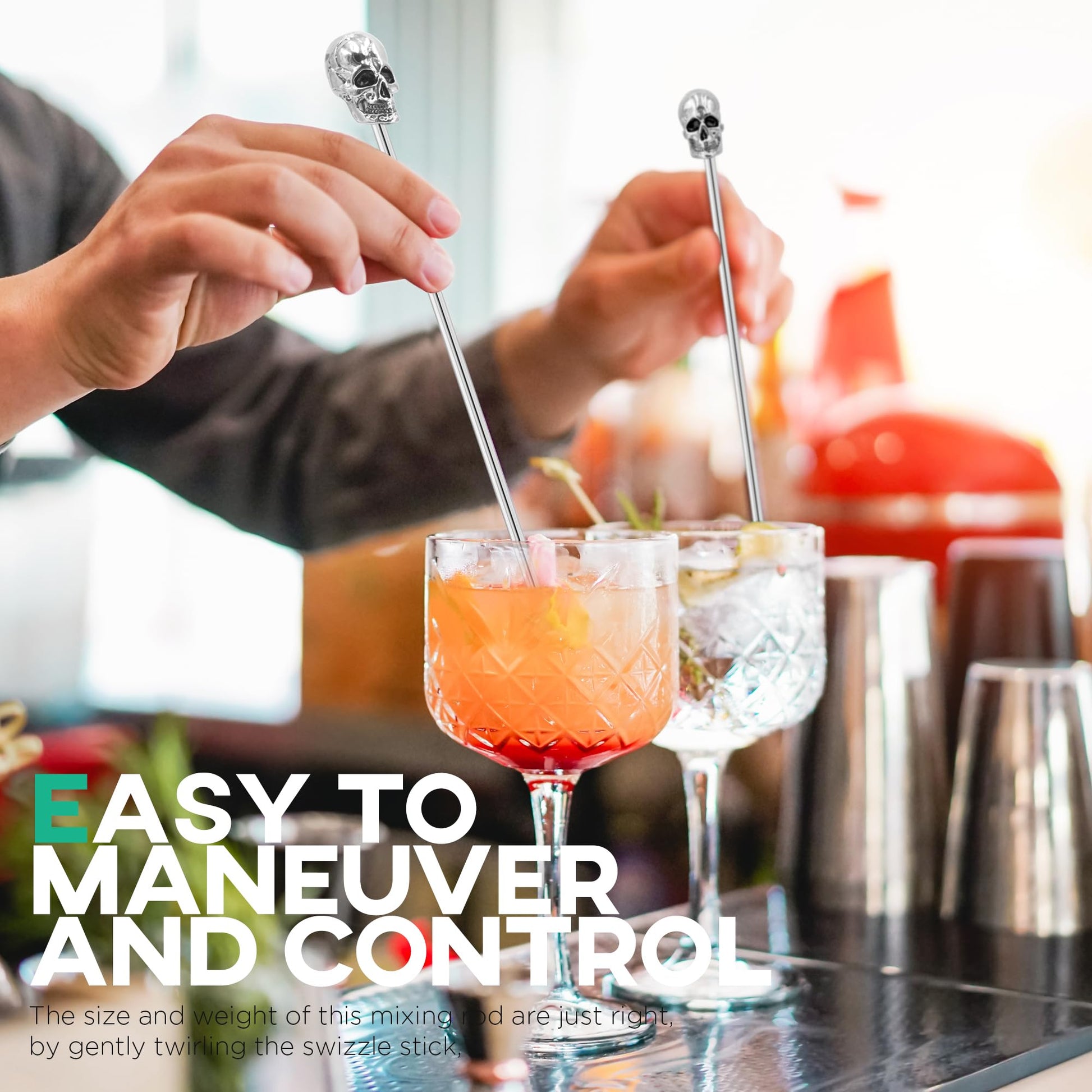 • OPERATION: The stirrer's head is adorned with a skull decoration, not only adds a touch of character to your barware but also serves as a functional handle, making it easy to maneuver and control the rod with precision. The size and weight of this mixing rod are just right, by gently twirling the swizzle stick, you can effectively blend the flavors without disturbing the ice or garnishes.