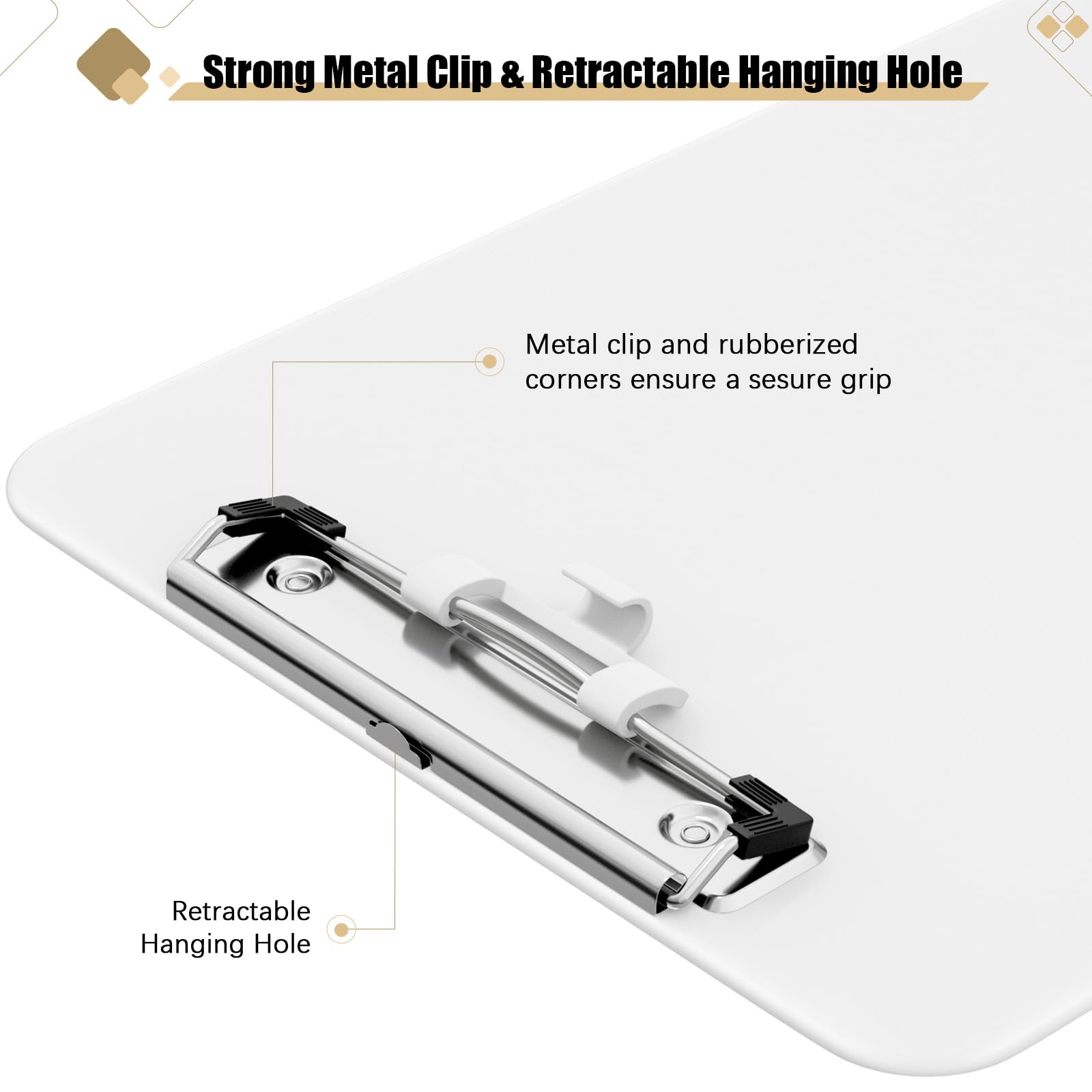 • Dimension:The size of each clipboard is 12.5 X 9 X 0.1 in (315*228*25mm) , With low profile Clip and pen holder. 0.1Inch thickness offer a enough strength