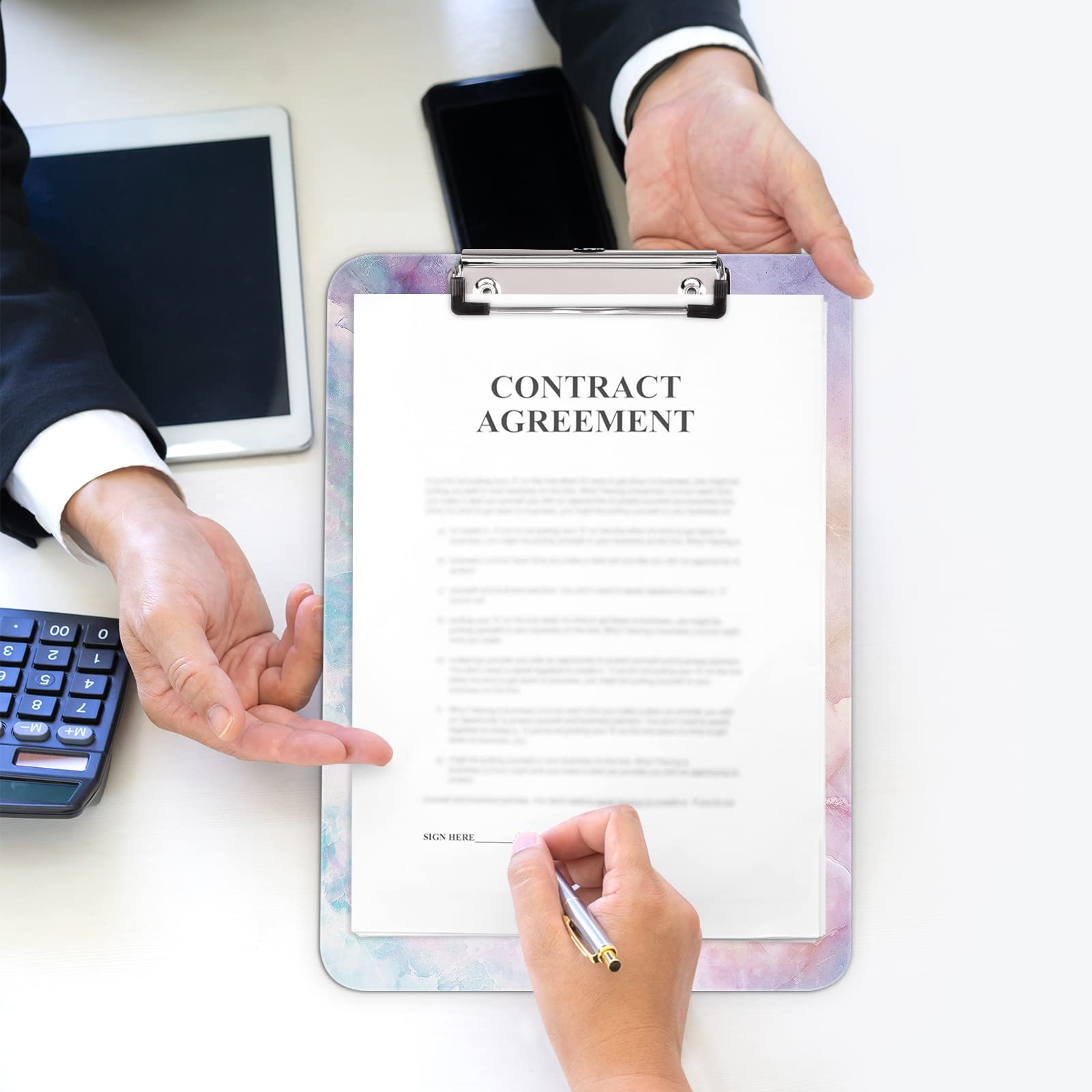 • Easy Use: Measures 12.5 X 9 X 0.1 inches, The fashion clipboard can hold standard A4 size papers, Easy to clip on and take off, Designed with Low-Profile Metal Clip, Easy to stow away when not needed and fits in most briefcases