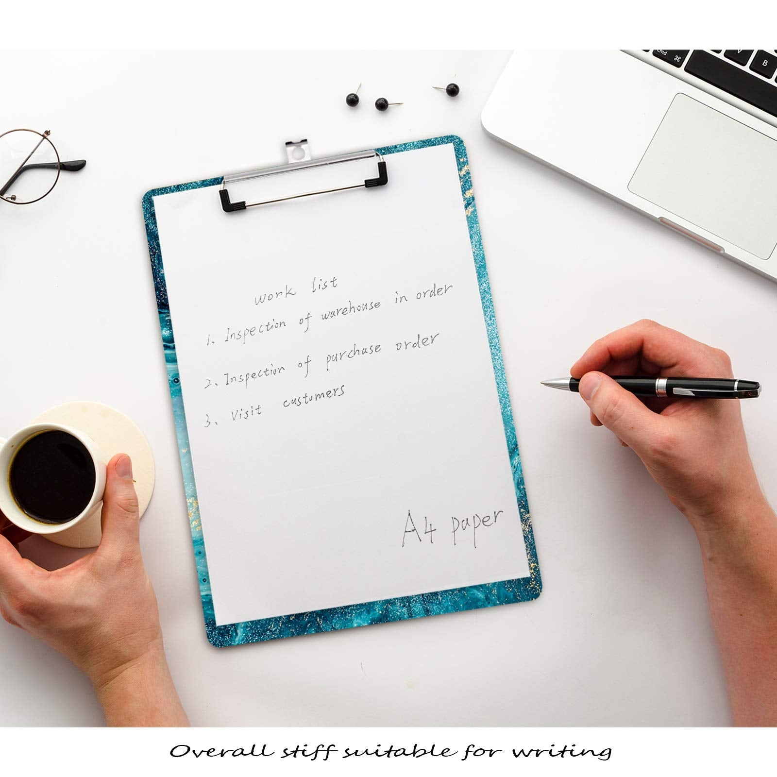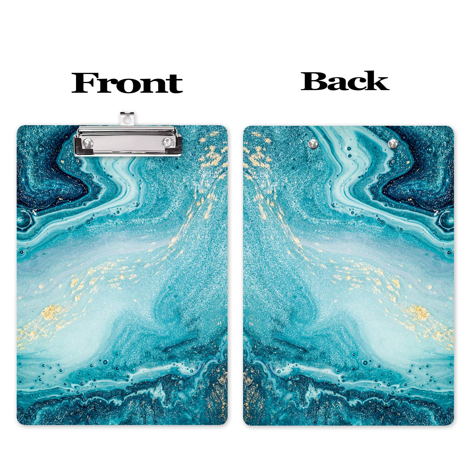 Hongri Wooden Clipboard, Fashion Design Clip Board for Classroom Students,Teacher, Women, Kids, Cute Custom Pattern, Standard Letter Size 9 x 12.5 in with Low Profile Metal Clip, Teal Marble
