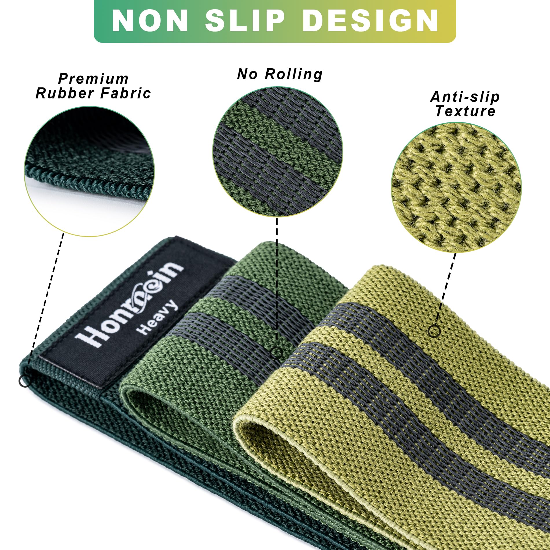 Honmein Resistance Bands for Working Out, 3 Levels Exercise Bands Workout Bands Set for Women Men, Hip Legs Booty Bands for Home Fitness, Gym, Yoga, Pilates(Green)
