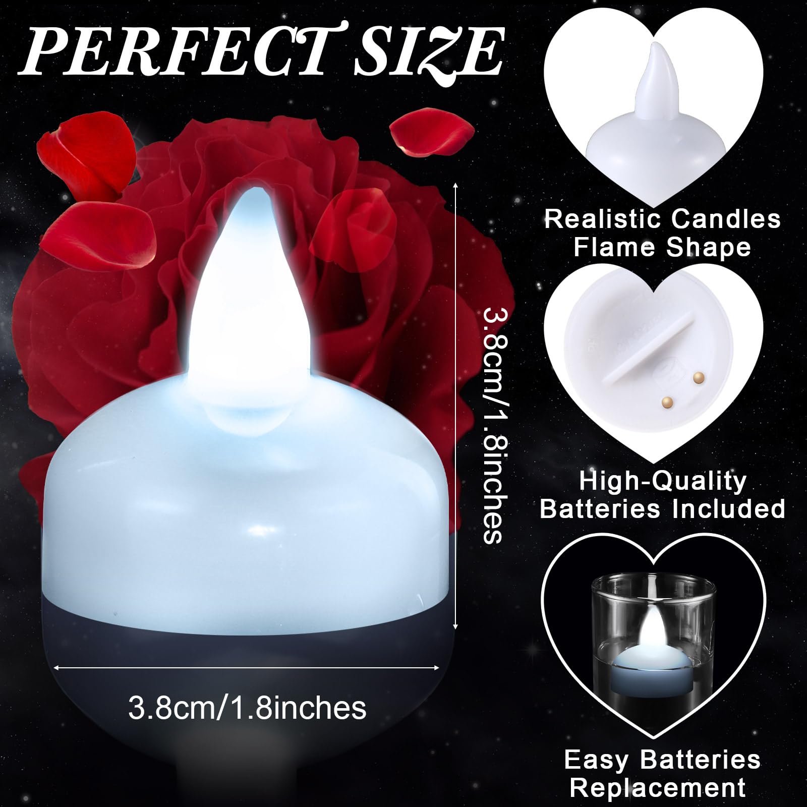 • Create a Romantic Atmosphere: our romantic LED flickering candles are designed in realistic shape, they are safe, beautiful and the nice substitute for real candle, with flickering light, easy for you to create a romantic atmosphere