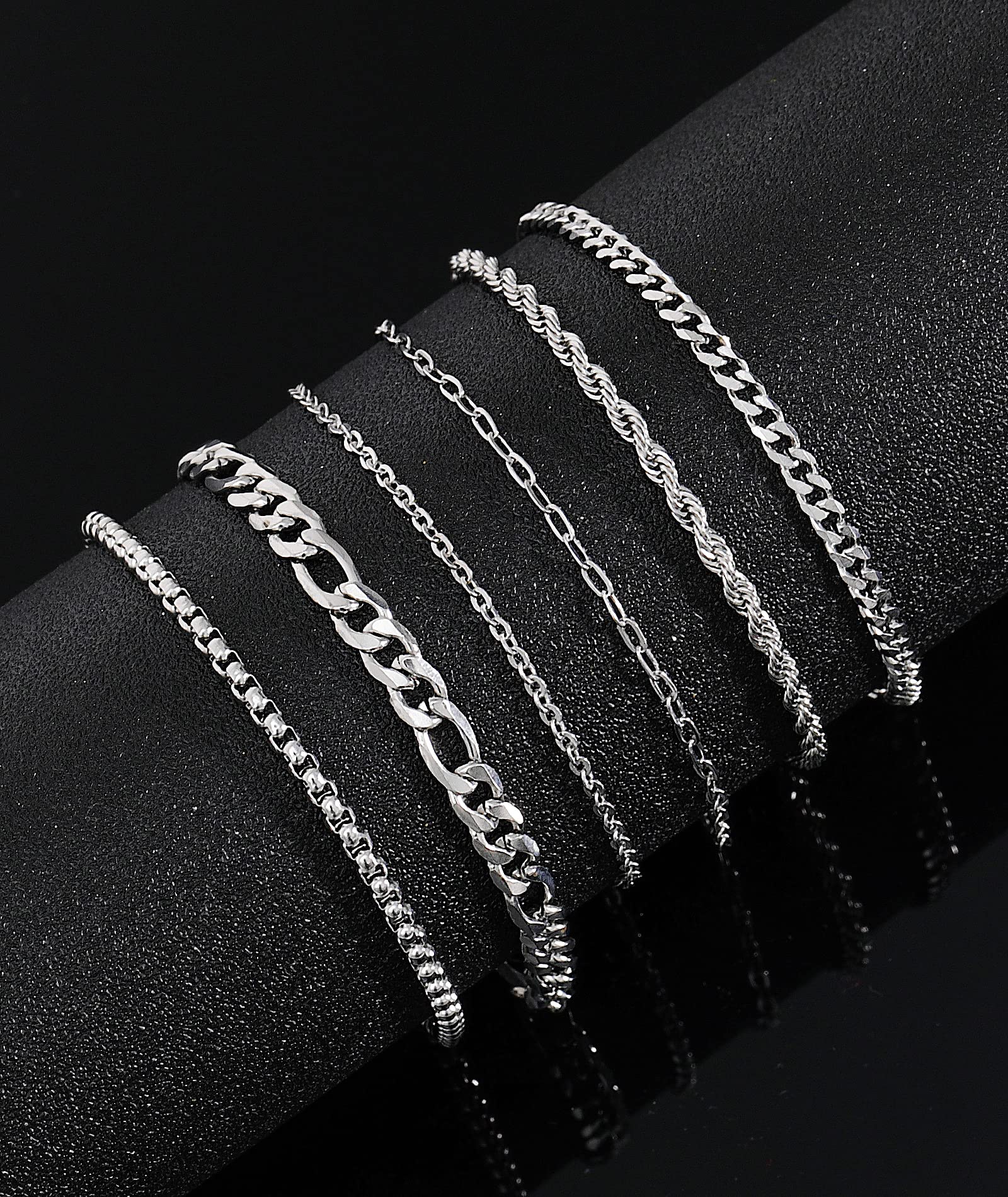 • 6PCS Bracelets : This simple stainless steel bracelets for women consists of a 6 style chain bracelets. Including paperclip link chain, figaro chain, rounded box bracelet, twisted rope chain bracelet, and curb bracelet. Our dainty stackable bracelets come in designs suited for everyone, perfect for every occasion