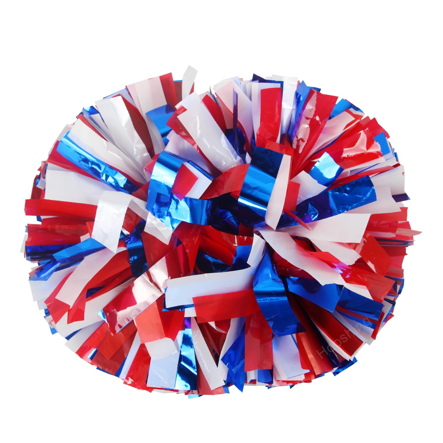 Hooshing 2PCS Red Bule and White Pom Poms Cheerleading with Baton Handle for Team Spirit Sports Festival Dance Cheering Gift