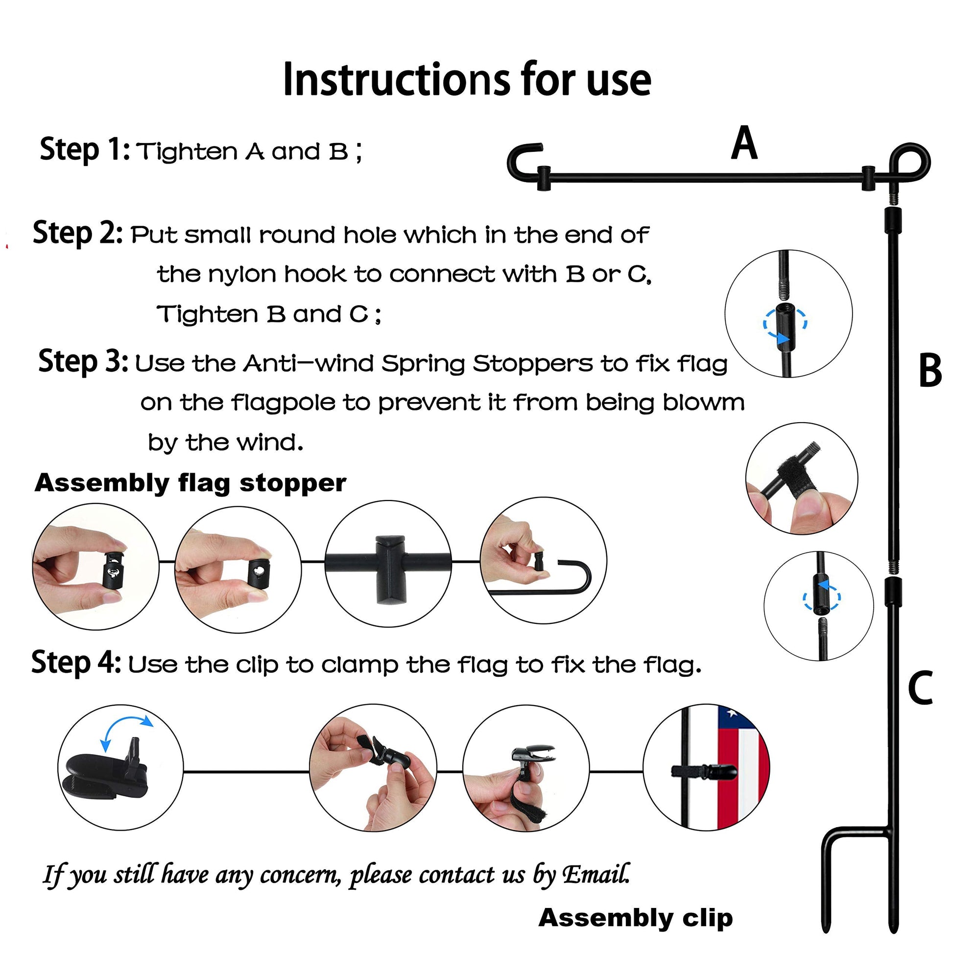 • ★Easy To Assemble: This Garden Flag Stand is easy to assemble, 3piece poles are easy to assemble a complete flag stand by tighten.The top pole and the bottom pole in the middle. Well-made threadsand reinforced joints will increase the garden flag stand Stability anddurability