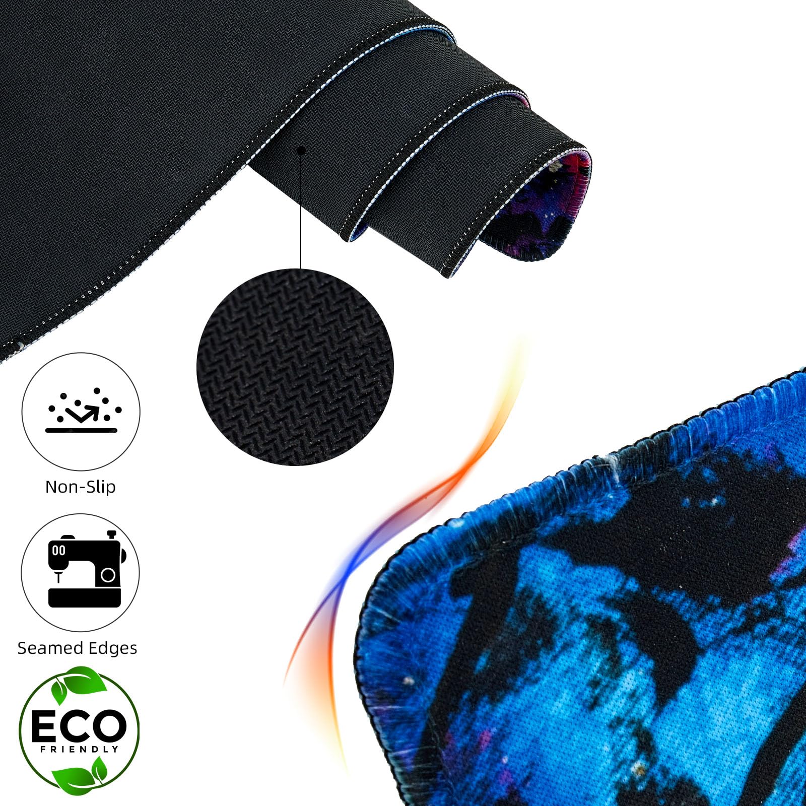 • 【Invisible Stitched Process】The invisible design of the seams of our long mouse pad not only avoids edge damage caused by long-term use, but also does not destroy the overall beauty of the pad, making it perfectly blend into the overall pattern. This design effectively extends the service life of the desk mat for desktop and is suitable for computers and laptops.