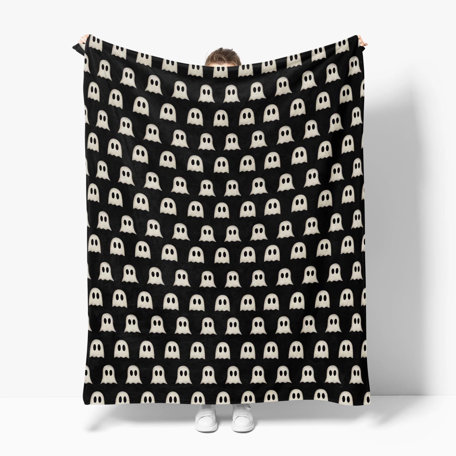 Horaldaily Halloween Flannel Blanket Throw, Cute Ghost Black Soft Fuzzy Plush Cozy Fleece Blankets for Couch Sofa Bed Lounging, Ideal Gifts for Kids Adults Wife Self, 50x60